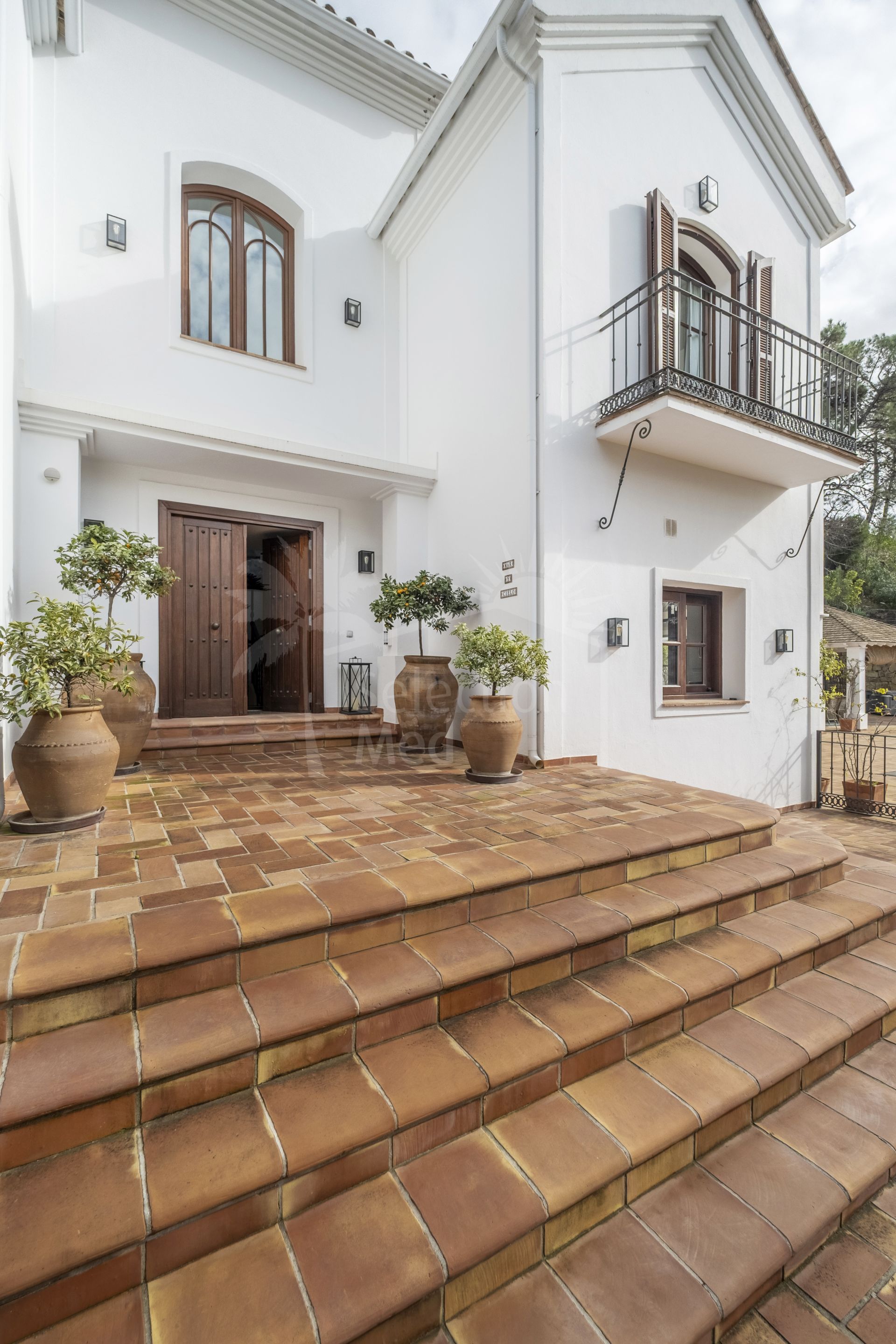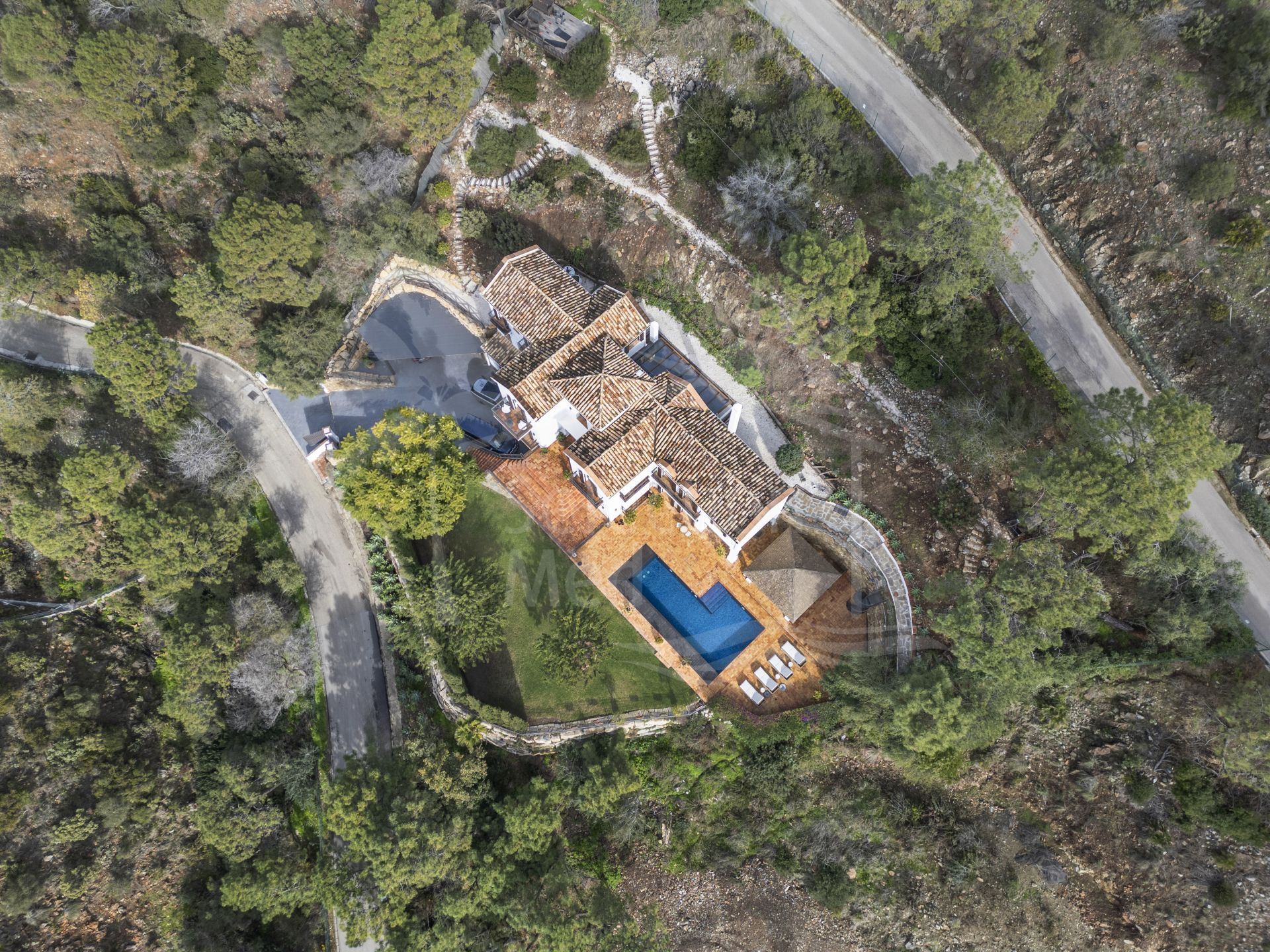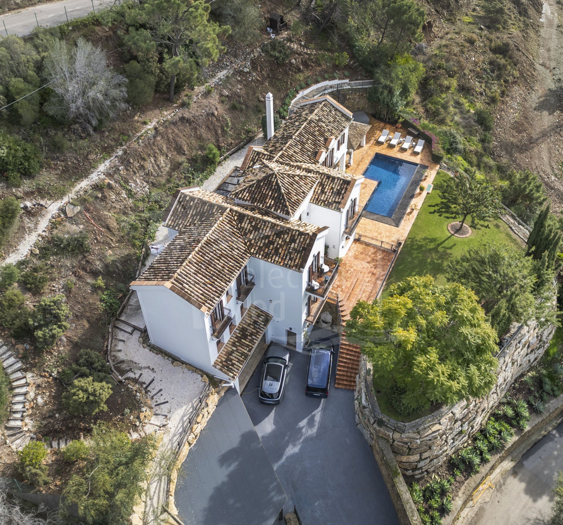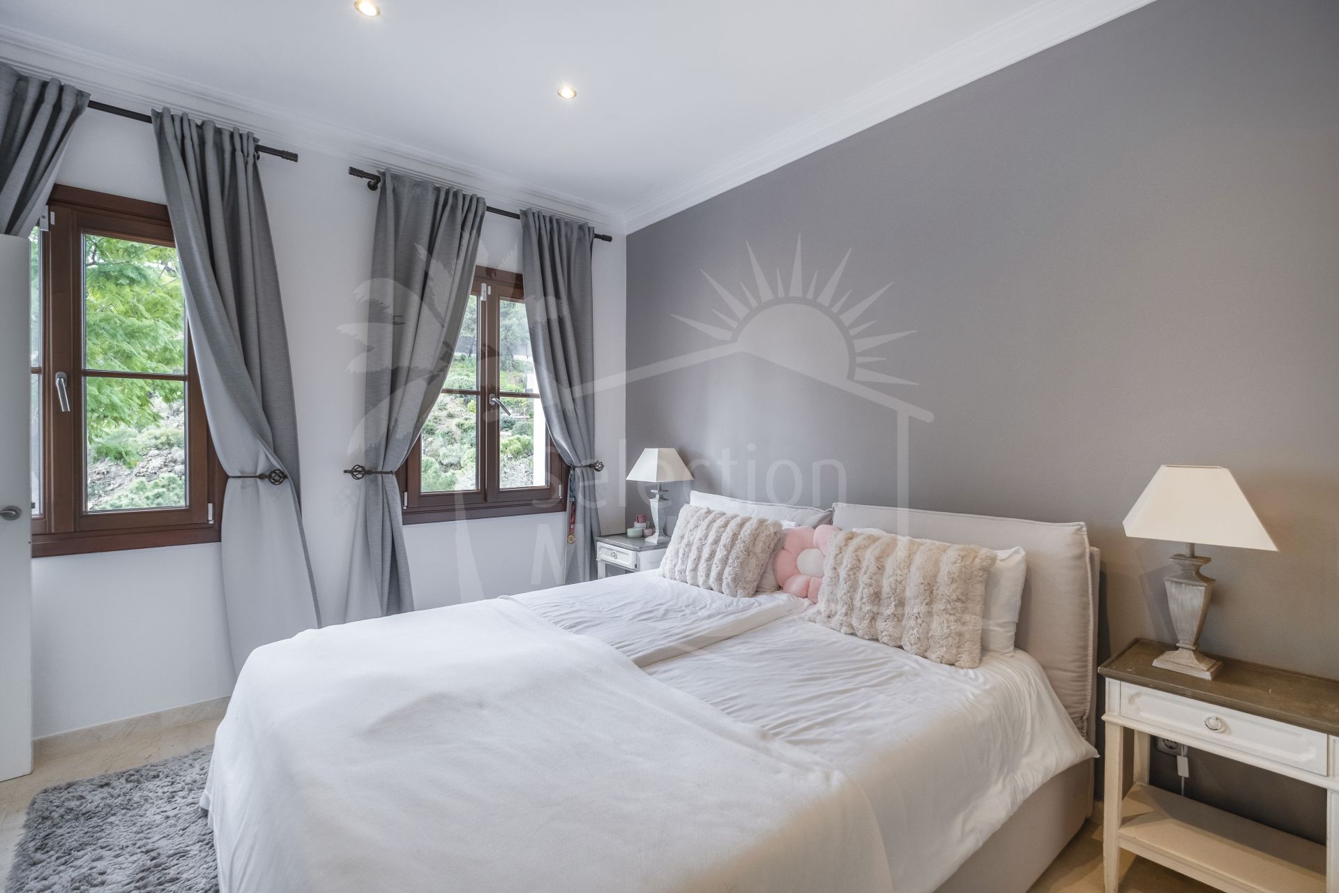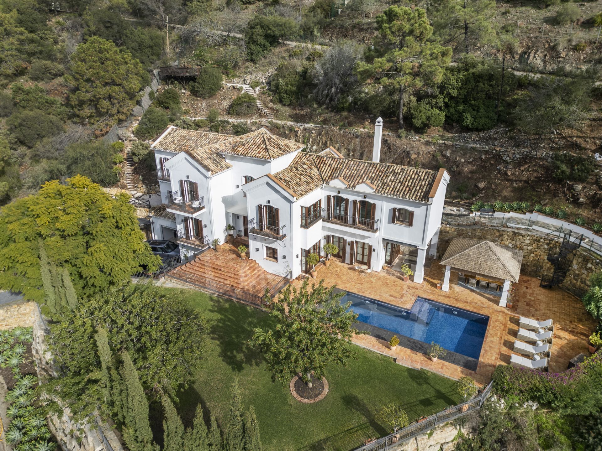 La villa allie charme espagnol traditionnel avec confort moderne bois naturel, marbre et finitions en pierre, chauffage au sol et appareils Miele. A l'extérieur, profitez de vastes terrasses, d'un grand jardin et d'un espace piscine serein avec vue panoramique.