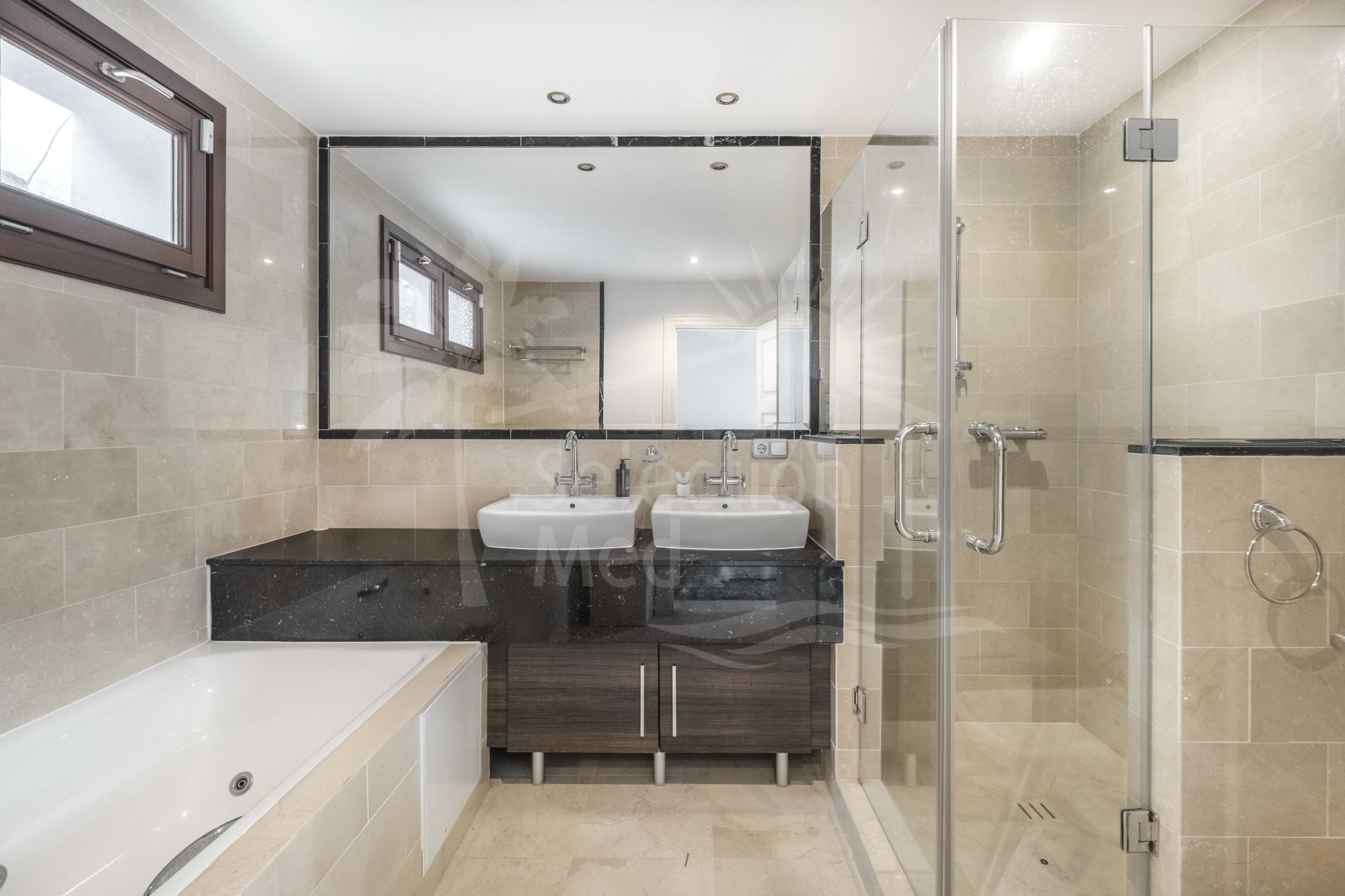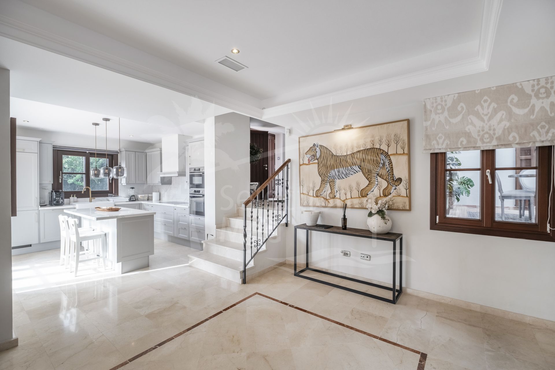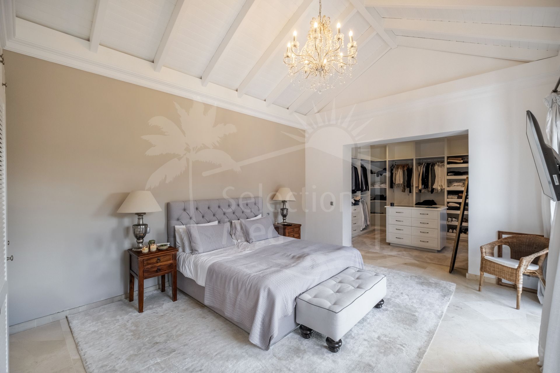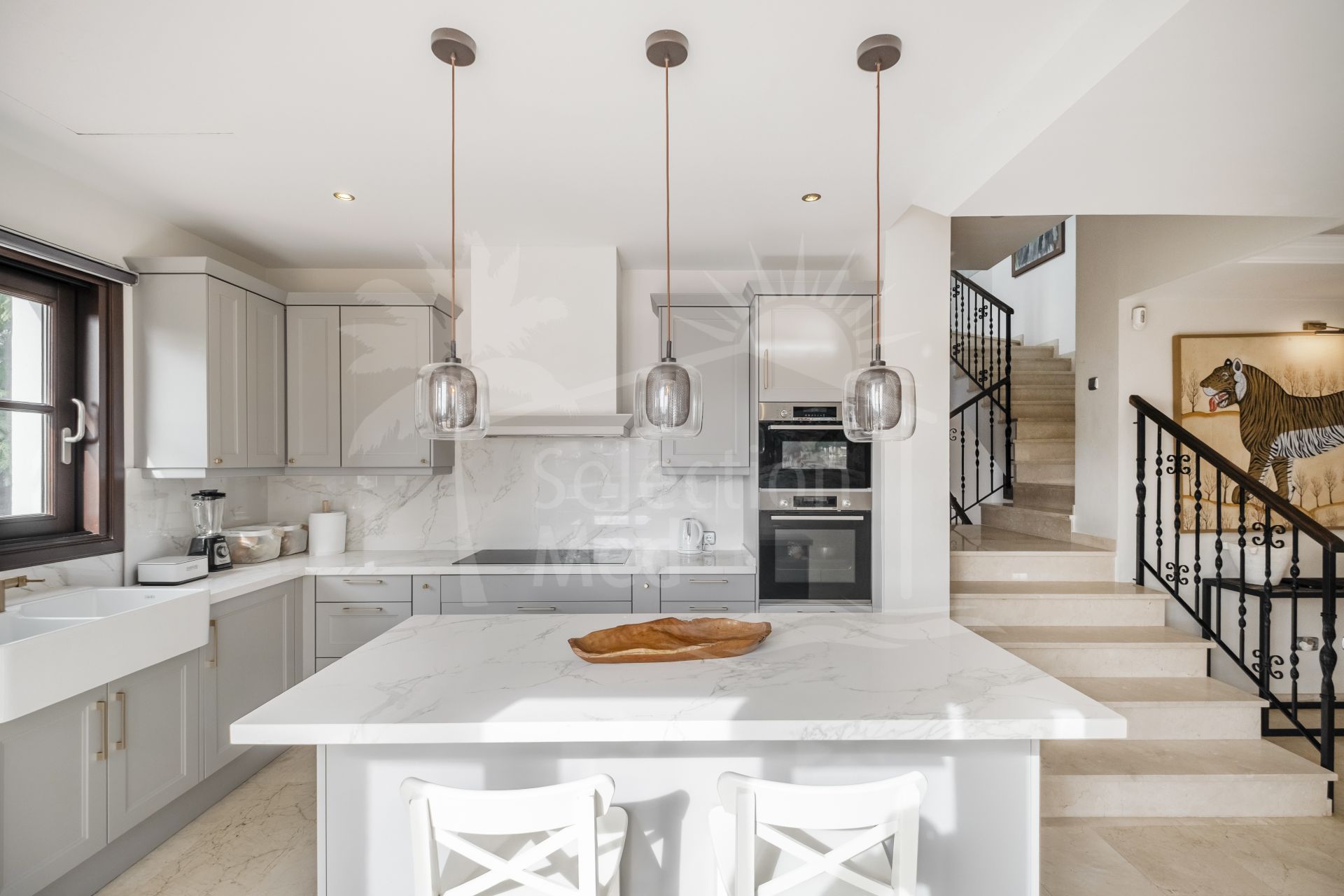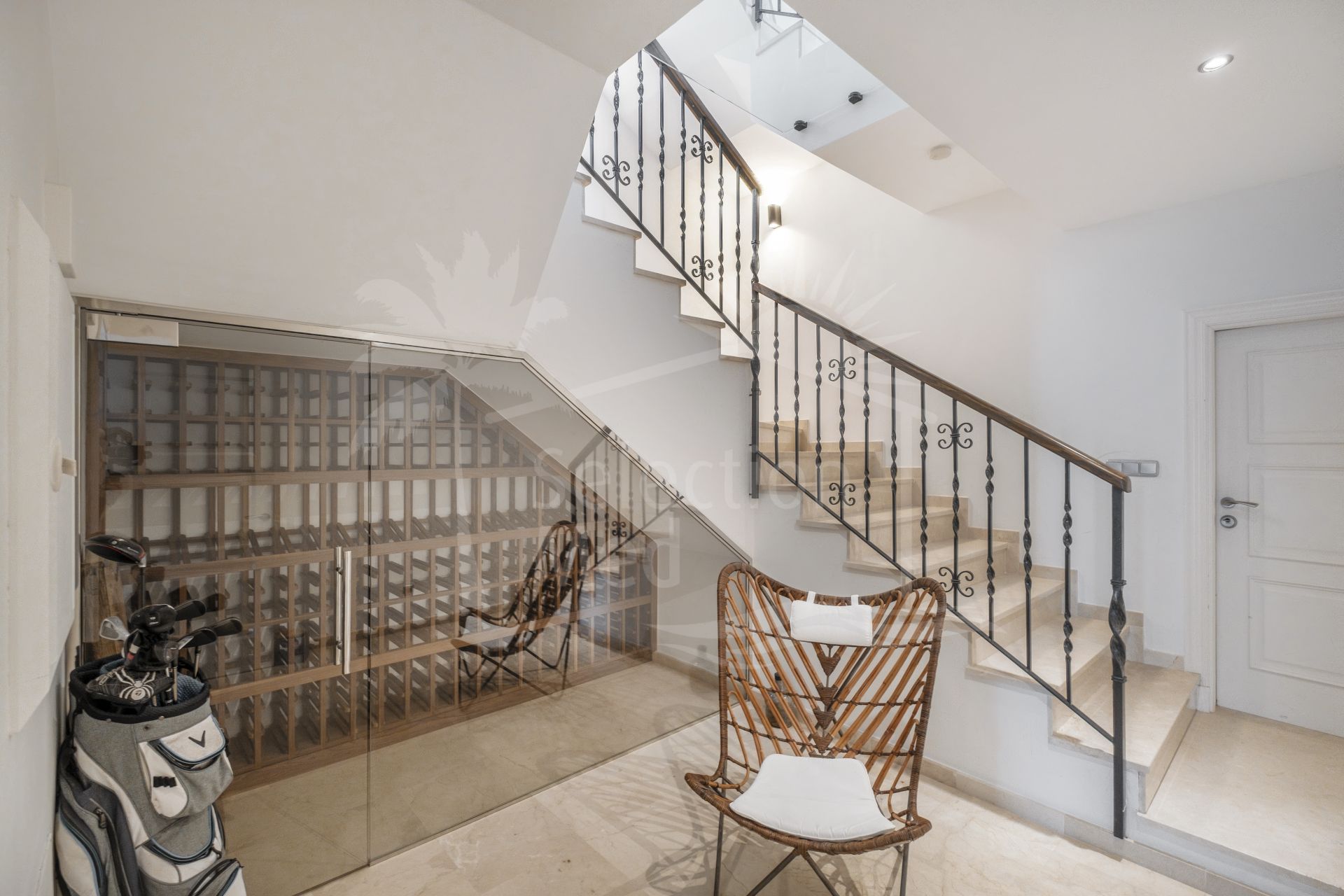La villa allie charme espagnol traditionnel avec confort moderne bois naturel, marbre et finitions en pierre, chauffage au sol et appareils Miele. A l'extérieur, profitez de vastes terrasses, d'un grand jardin et d'un espace piscine serein avec vue panoramique.