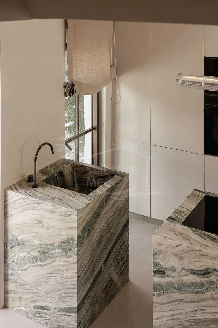 Attrayante maison mitoyenne récemment rénovée, alliant le charme andalou au confort moderne. Le rez-de-chaussée a été entièrement repensé, avec un sol en grès cérame effet bois qui confère continuité et chaleur à tous les espaces. La cuisine, moderne et ouverte, équipée d’un îlot central, s’intègre harmonieusement au salon doté d’une cheminée accueillante. Depuis cette pièce, on accède à une terrasse ensoleillée et au jardin privé, parfaits pour profiter de moments en plein air.