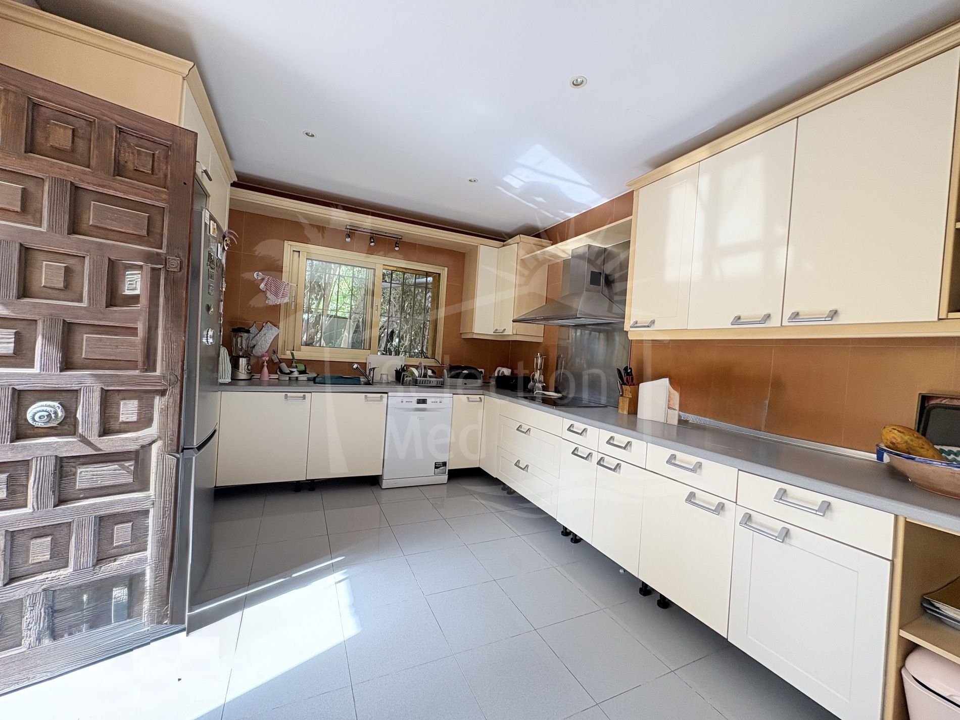 Un salon lumineux et expansif de 80m2 sert de coeur à la maison, parfait pour les rassemblements ou la vie communautaire. Une cuisine séparée et entièrement équipée se connecte facilement au salon.