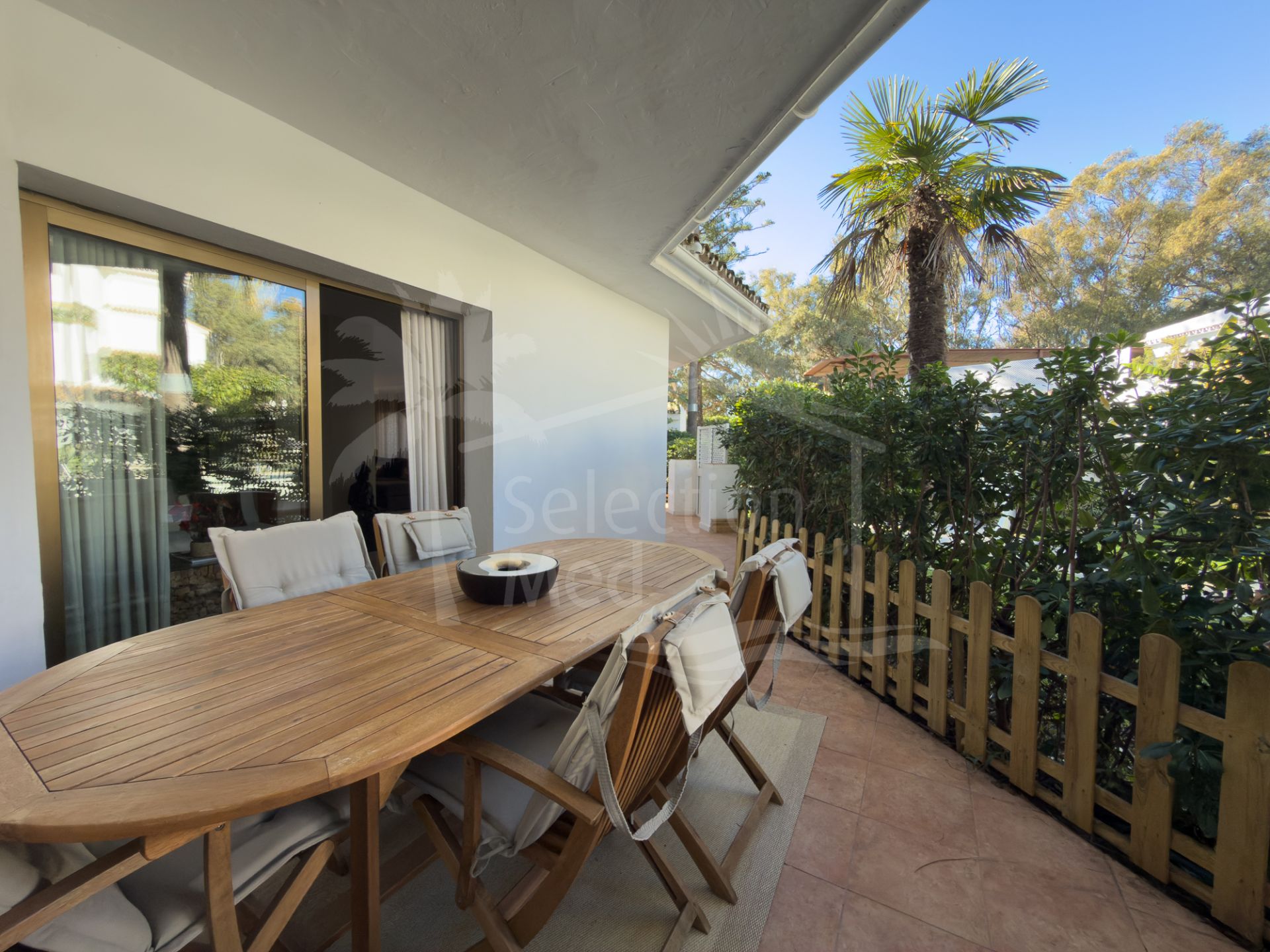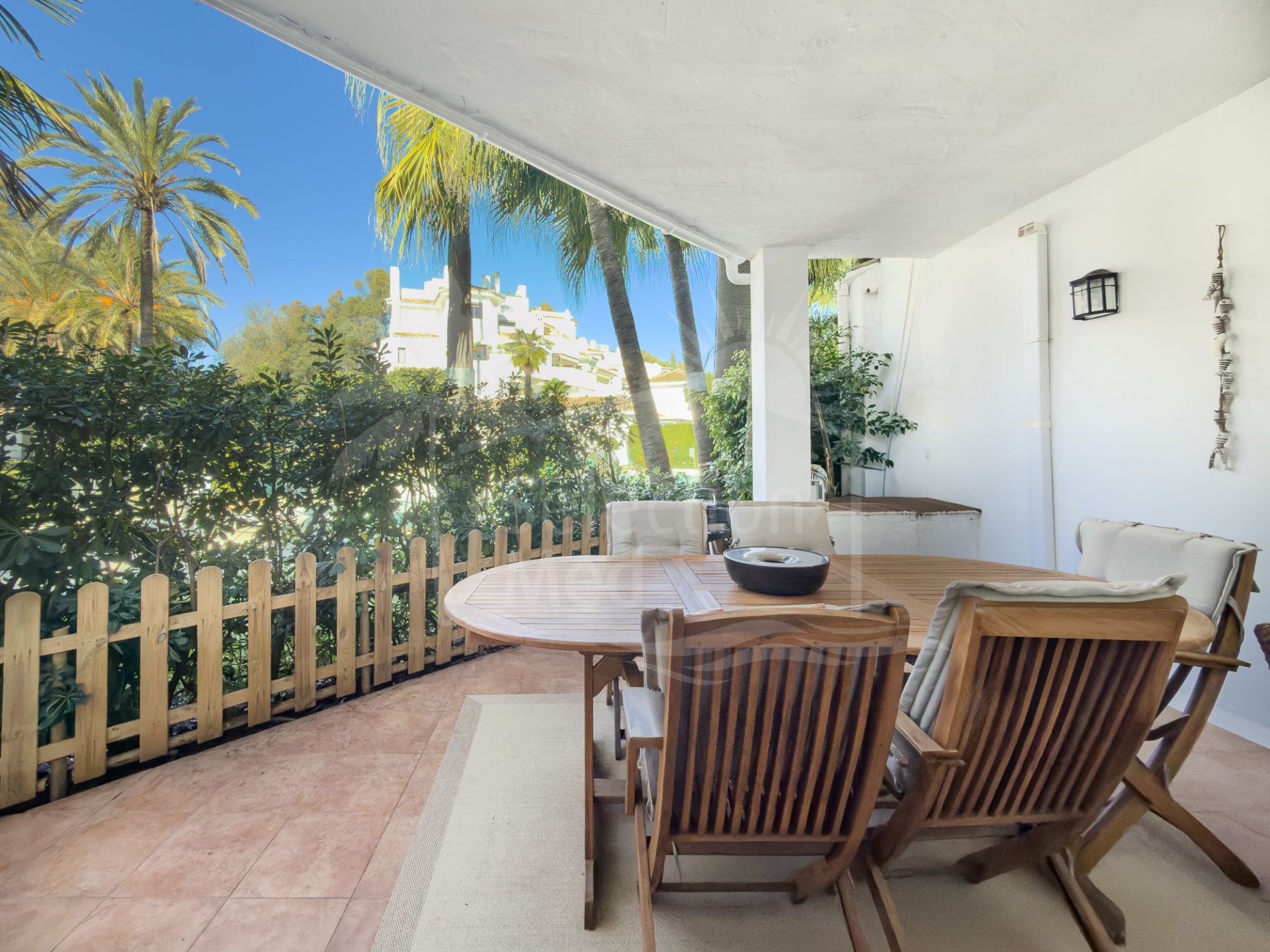 L'appartement dispose d'une impressionnante terrasse enveloppante avec un accès direct aux jardins communautaires et piscines magnifiquement entretenus. L'espace extérieur est idéal pour se détendre, se divertir et profiter du style de vie méditerranéen, y compris une terrasse pittoresque avec un bain à remous privé donnant sur les environs luxuriants.
