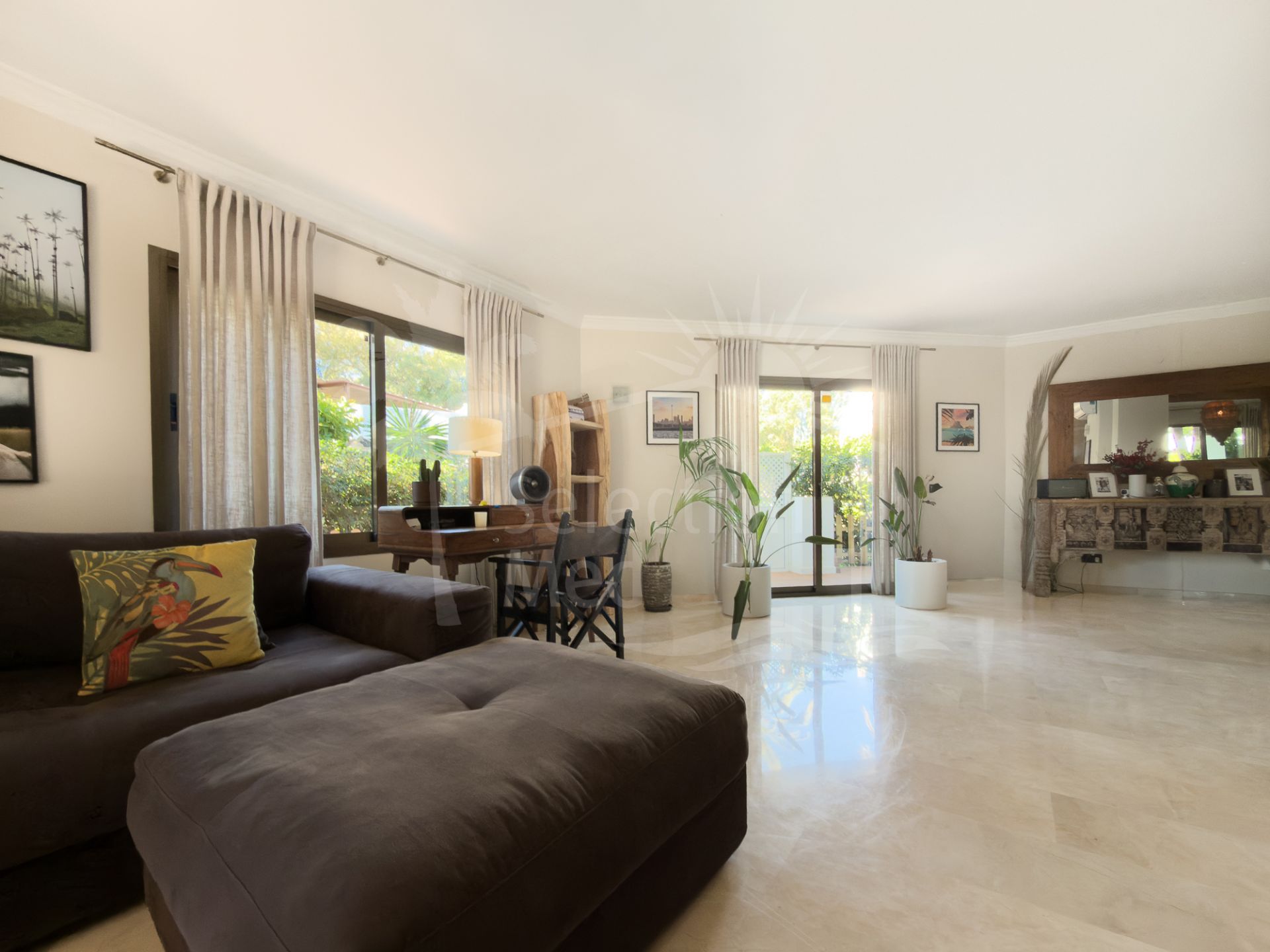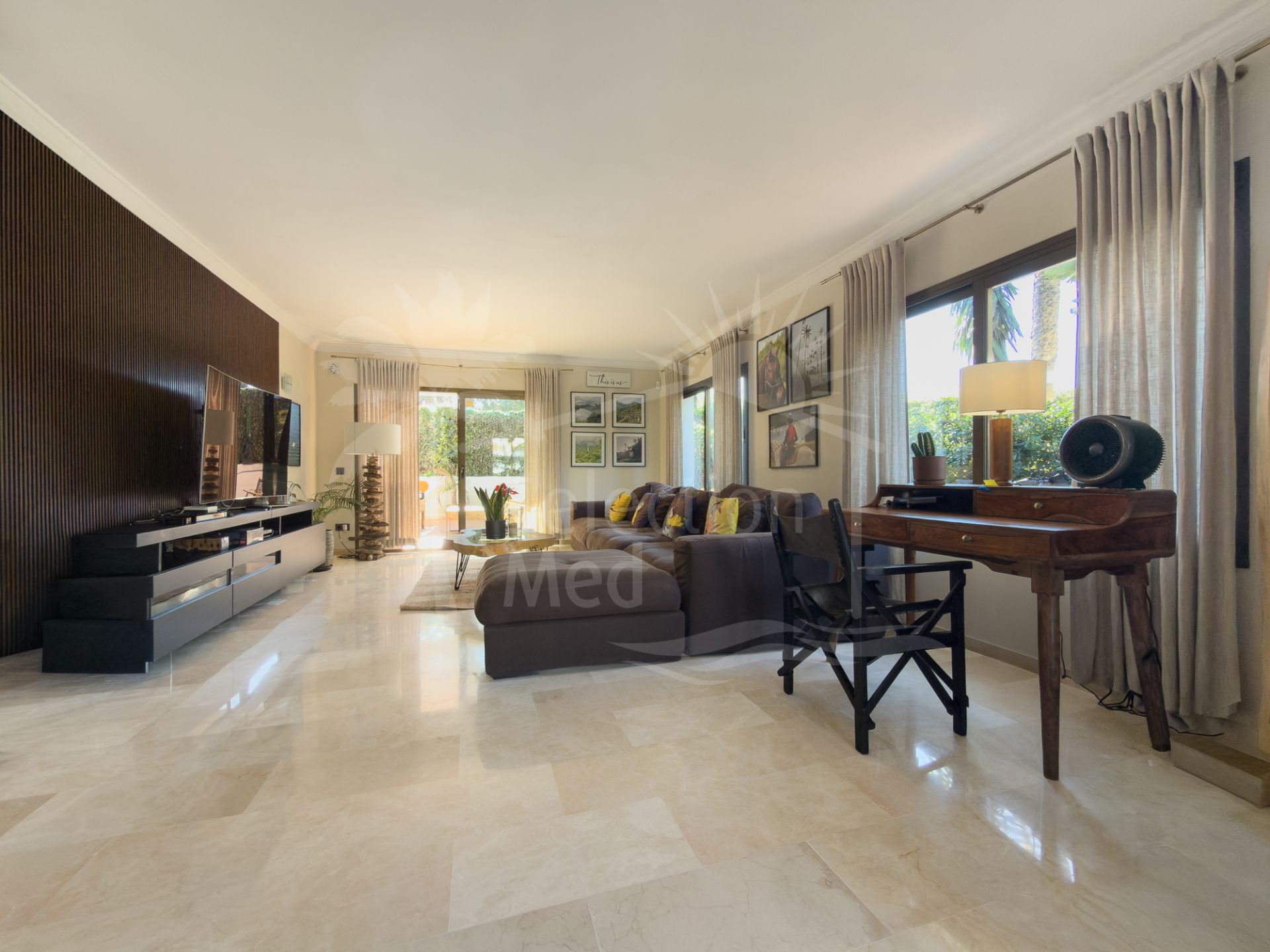 Golden Beach est réputée pour ses vastes jardins tropicaux matures et plusieurs piscines extérieures, toutes dans un environnement sûr et exclusif en bord de mer. L'emplacement est imbattable, à proximité de toutes les commodités, y compris des magasins, des supermarchés, des restaurants de plage, des terrains de golf, et seulement à quelques minutes en voiture du centre-ville de Marbella.
