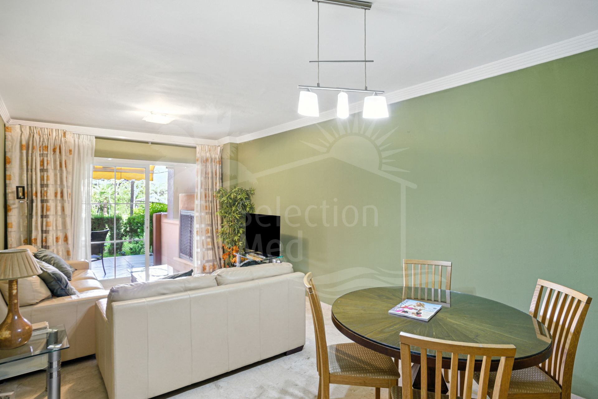 Appartement lumineux et spacieux de deux chambres, rez de chaussée situé dans la prestigieuse communauté de Pino Golf, Elviria