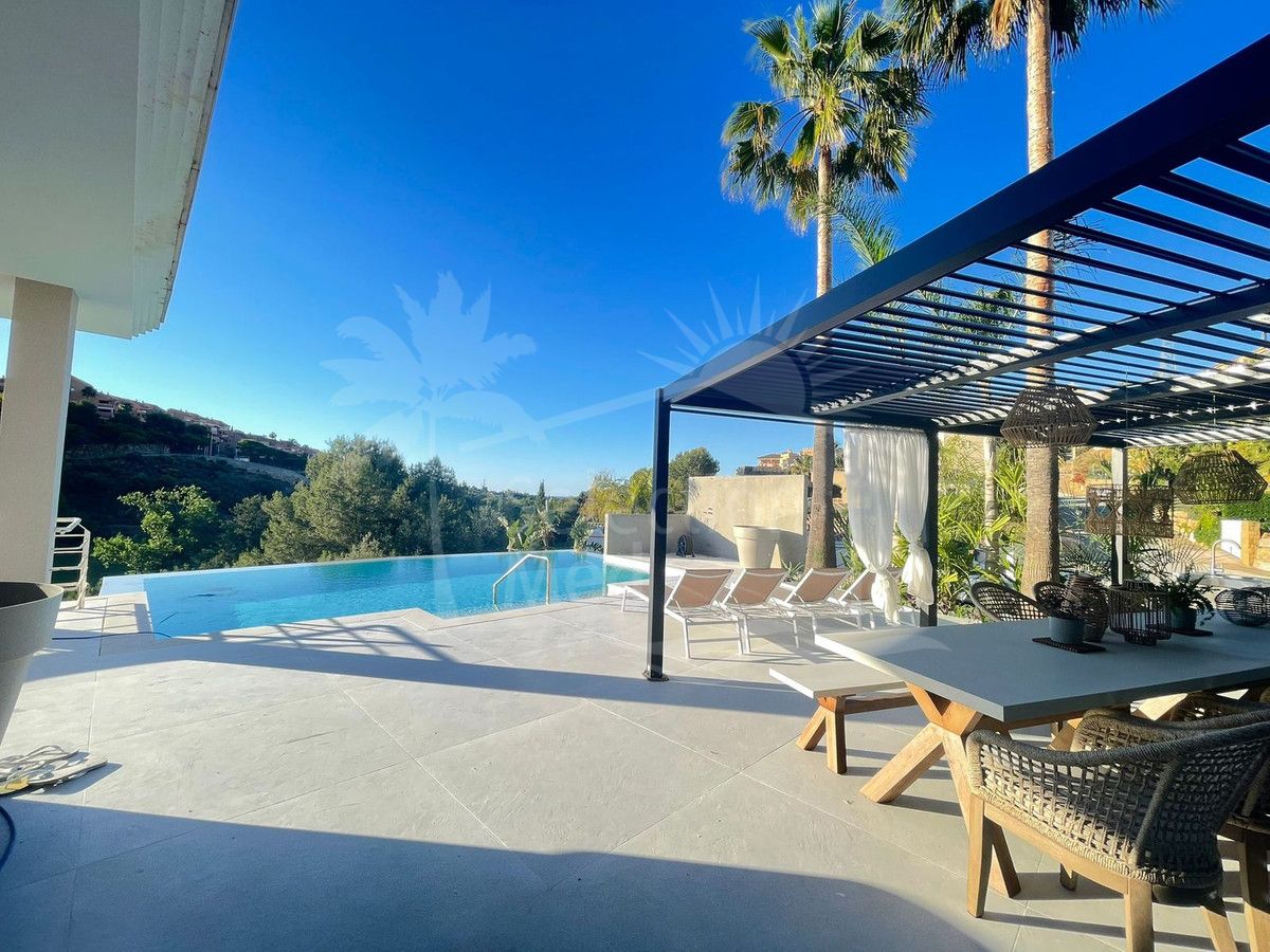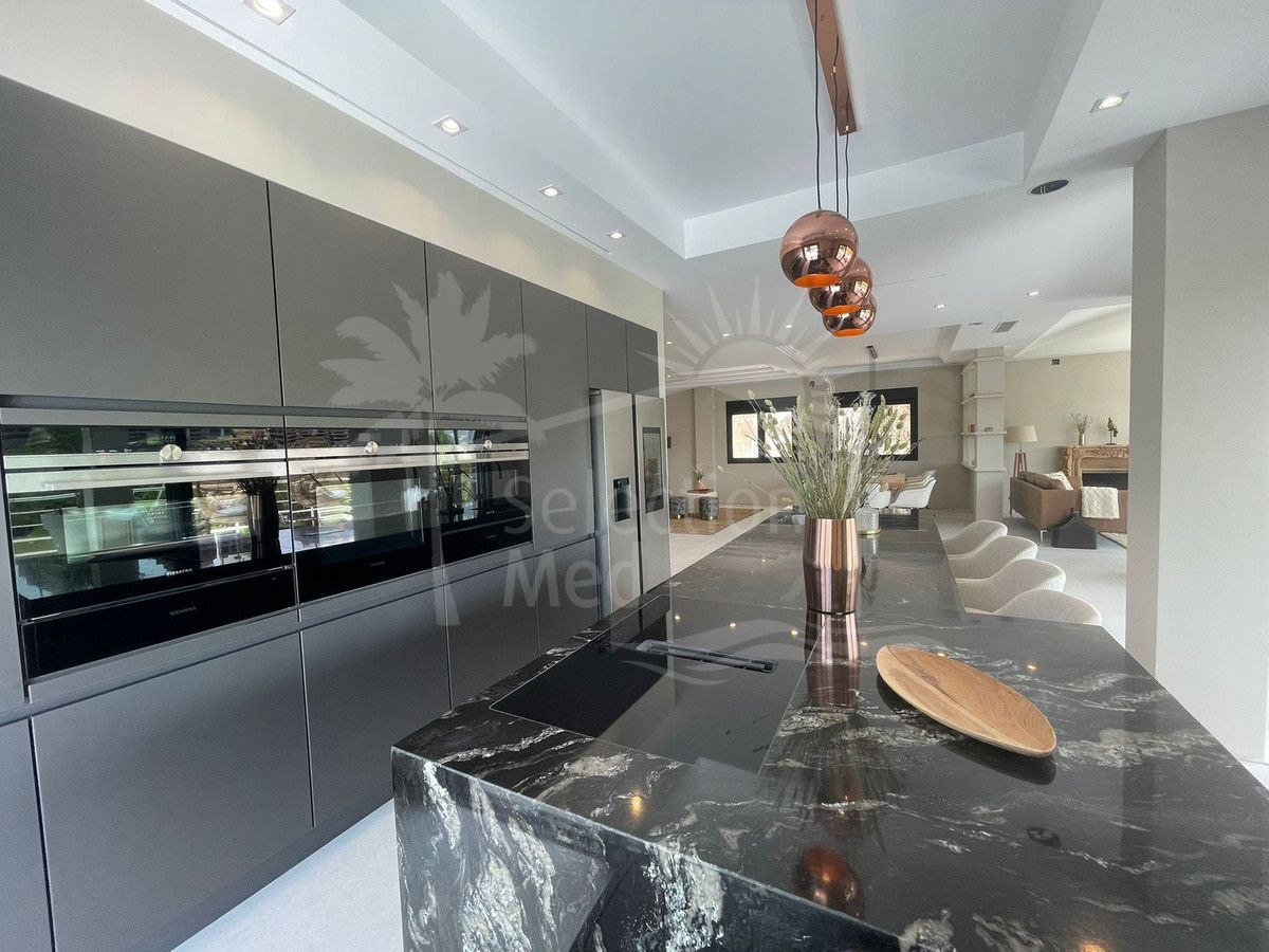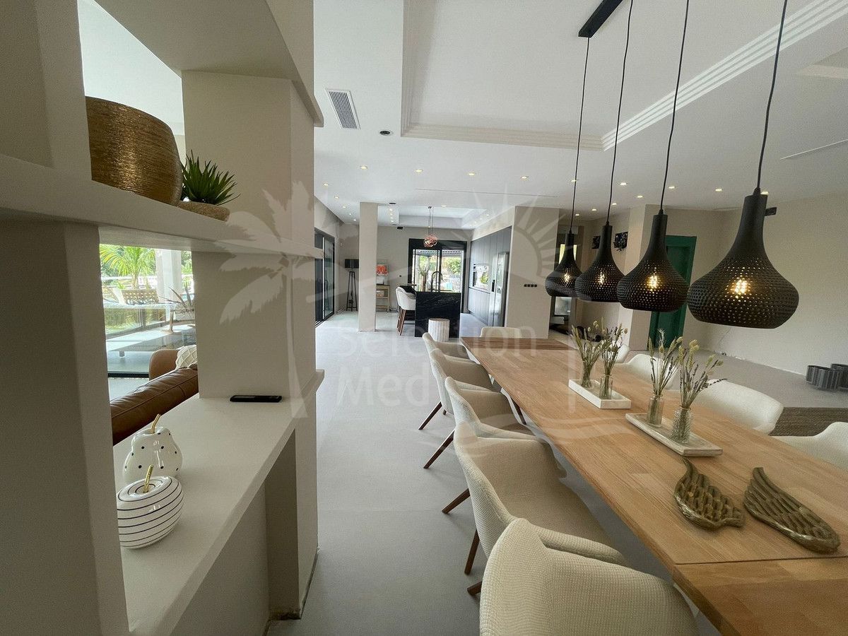 Villa à vendre à Elviria, Marbella Est avec 7 chambres, 8 salles de bains, construit à 2022 et a piscine (privé), garage et jardin (privé). Dimensions: 579m² construit, 1335m² parcelle et 200m² terrasse.