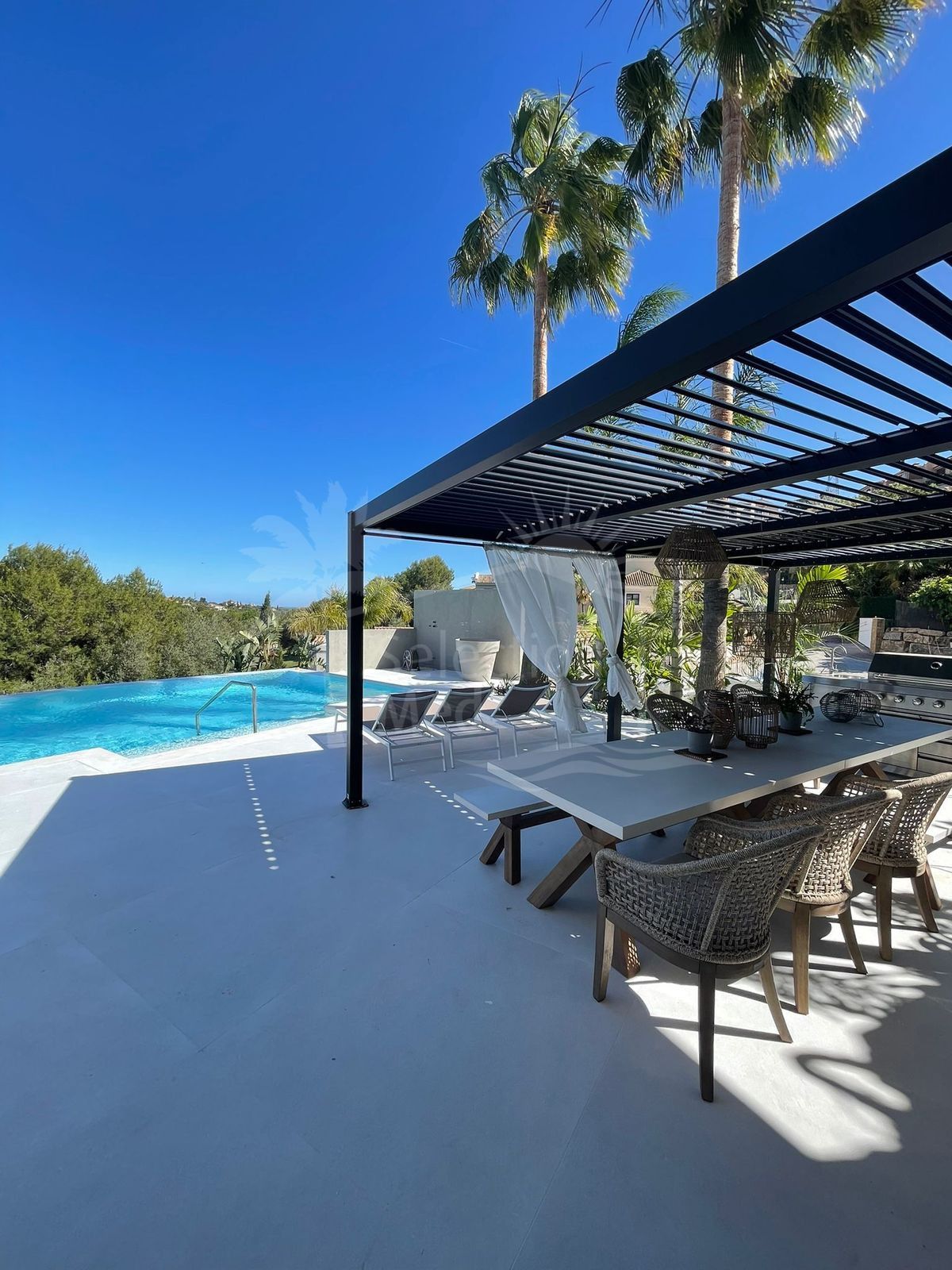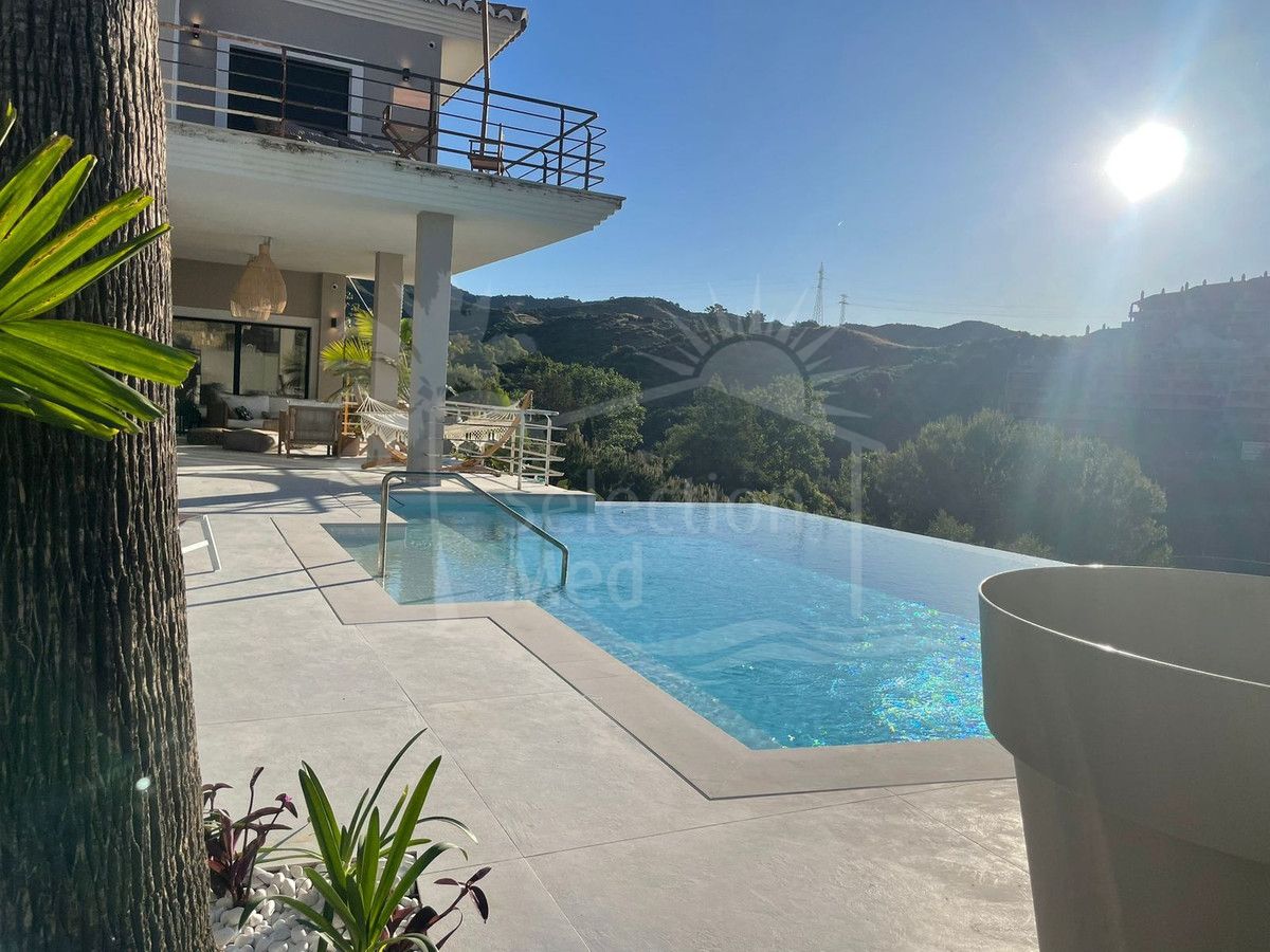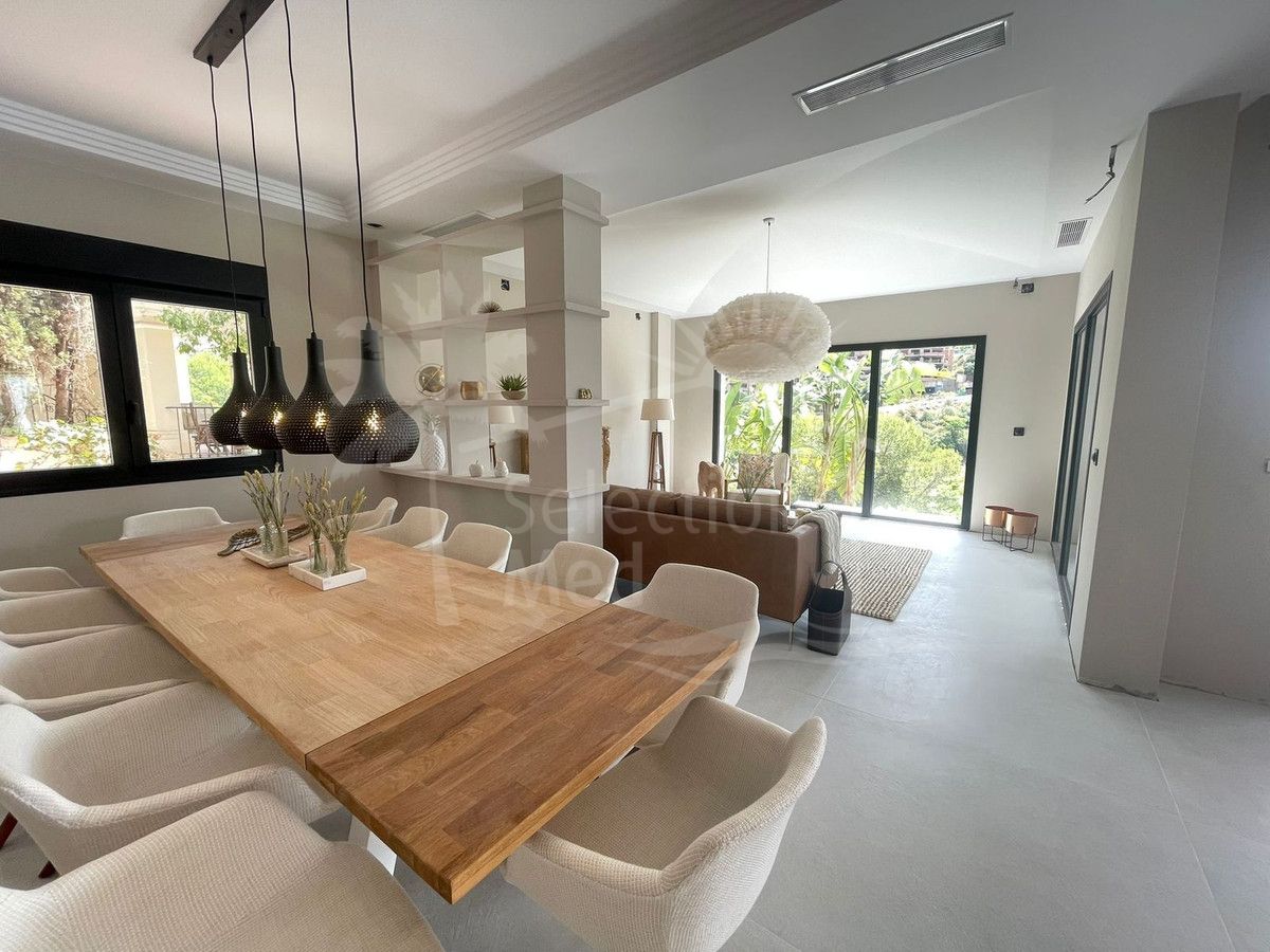 Villa à vendre à Elviria, Marbella Est avec 7 chambres, 8 salles de bains, construit à 2022 et a piscine (privé), garage et jardin (privé). Dimensions: 579m² construit, 1335m² parcelle et 200m² terrasse.