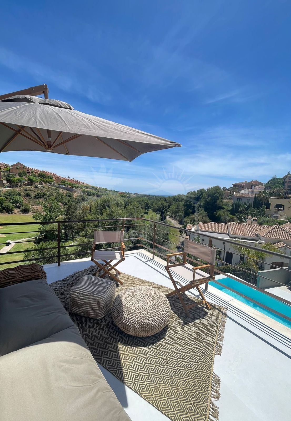 Cette propriété, orientation sud-est, dispose des commodités suivantes: terrasse privée, climatisation, proche des écoles, vue mer, cuisine entièrement adaptée, pièce de service, vue sur le golf, jacuzzi, proche de la mer/plage, golf à proximité, cave, entrepôt, terrasse couverte, double vitrage, ascenseur, barbecue, récemment rénové et vue panoramique.