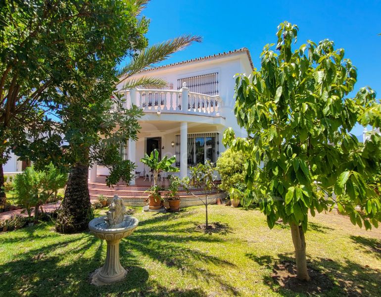 Villa à vendre à Elviria, Marbella Est avec 4 chambres, 3 salles de bains, 1 toilettes, construit à 1990 et a piscine (privé), garage et jardin. Dimensions: 324m² construit, 1322m² parcelle, 282m² intérieur et 42m² terrasse. Cette propriété dispose des commodités...