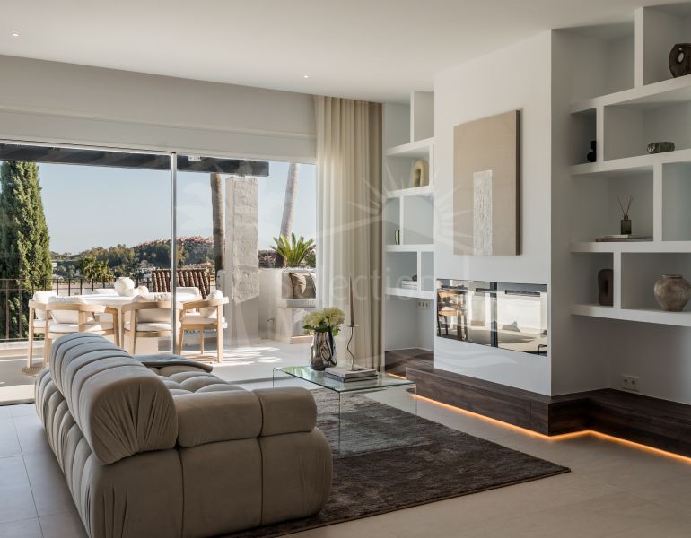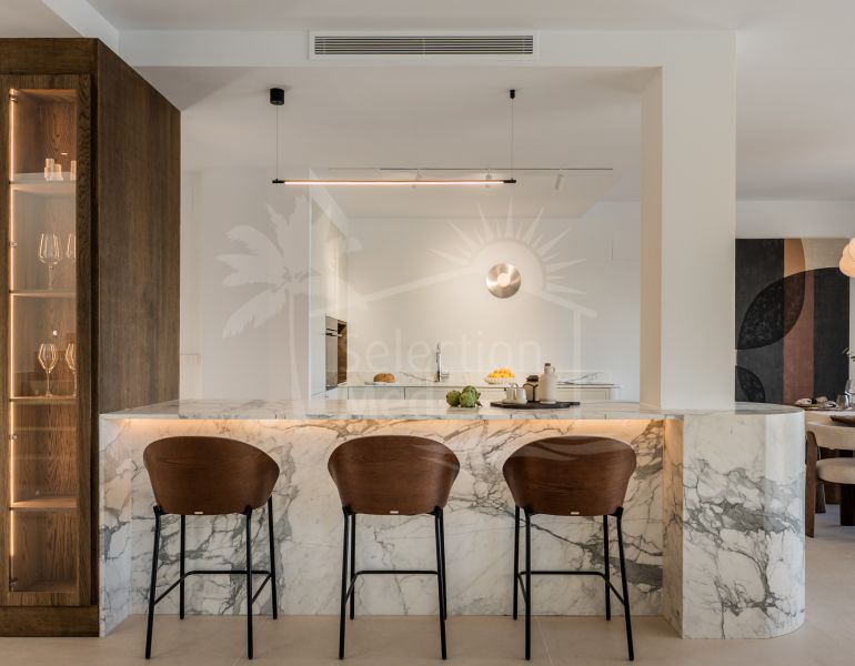 Situé au cœur de la prestigieuse "Golf Valley" de Marbella, ce penthouse de 165 m² impeccablement rénové incarne le summum du raffinement à Nueva Andalucía. Atout rare et exclusif, cette résidence dispose d'un ascenseur privé offrant un accès direct et...