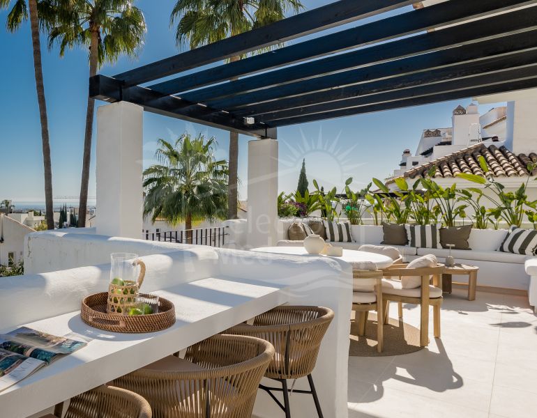 Duplex Penthouse à vendre à La Quinta Village, Nueva Andalucia avec 3 chambres, 4 salles de bains, 3 salles de bain en-suite, construit à 2002 et a piscine (communautaire) et garage (abri voiture). Dimensions: 245m² construit, 165m² intérieur et 80m²...