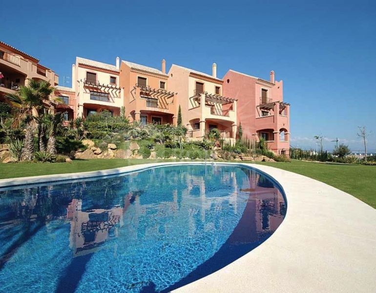Duplex à vendre à Alcorrín, Manilva avec 3 chambres, 4 salles de bains, 3 salles de bain en-suite, construit à 2006 et a piscine (communautaire), garage (privé) et jardin (communautaire). Dimensions: 153m² construit et 50m² terrasse. Cette propriété, orientation sud, dispose...
