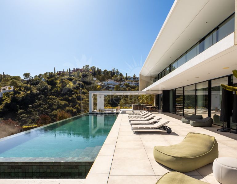 Villa à vendre à El Madroñal, Benahavis avec 7 chambres, 9 salles de bains et a piscine (privé), garage (privé) et jardin (privé). Dimensions: 1175m² construit, 3835m² parcelle, 825m² intérieur et 350m² terrasse. Cette propriété, orientation sud, dispose des commodités suivantes:...