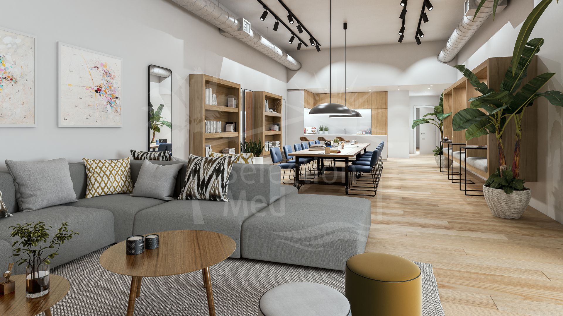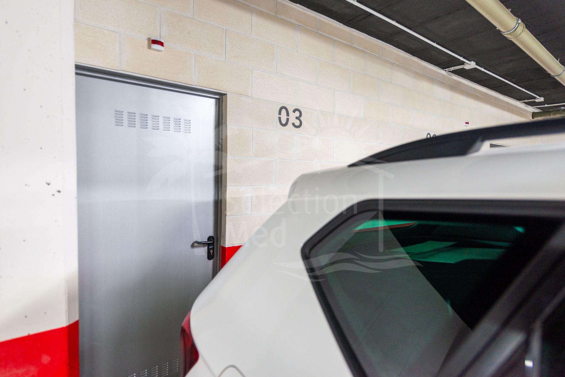 L'appartement dispose d'un salon lumineux et spacieux qui s'écoule parfaitement dans une cuisine ouverte moderne, entièrement équipée avec des appareils de qualité et un espace de travail généreux. De grandes fenêtres permettent à la lumière naturelle de remplir la maison, tandis que le balcon privé offre l'endroit idéal pour se détendre et profiter de la vue panoramique.