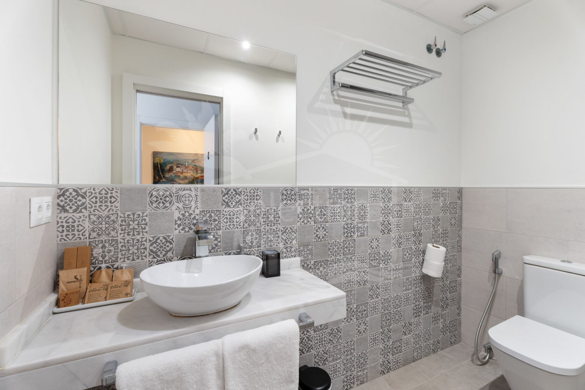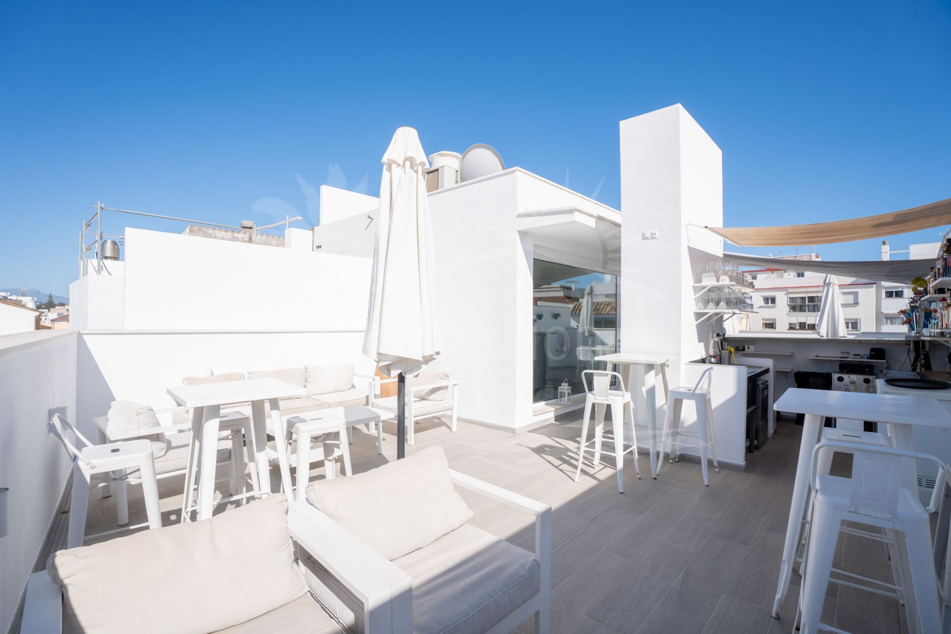 Cette propriété, orientation sud, dispose des commodités suivantes: terrasse privée, réservoir d'eau, À proximité des commerces, près du port, surveillancecameras, bureau, climatisation individuelle, kitchenette, internet – wi-fi, vue partielle sur la mer, service 24h, sols en céramique, placards, internet – fibre optique, ascenseur, services de proximité, vue sur la rue, transport proche, climatisation, cave à vin, entièrement meublé, parc pour enfants proche, proche de la mer/plage, golf à proximité, tv par satellite, terrasse découverte, entrepôt, balcon, solarium, entrée sécurizé, double vitrage, video interphone, accès pour handicapées, excellent état, salle à manger, téléphone et vue urbaine.