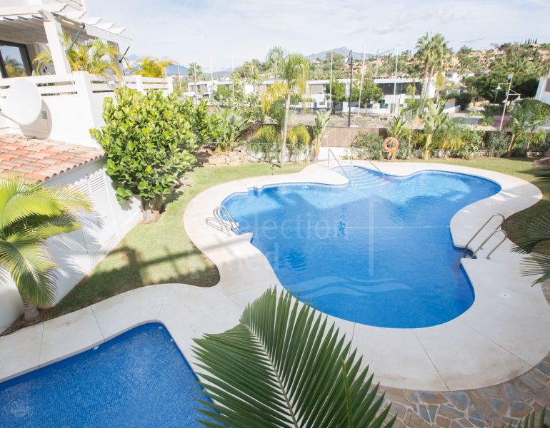 Maison de Ville à vendre à Monte Biarritz, Estepona Est avec 4 chambres, 4 salles de bains, construit à 1993 et a piscine (communautaire), garage (privé) et jardin (privé). Dimensions: 250m² construit et 100m² parcelle. Cette propriété, orientation sud, dispose des...