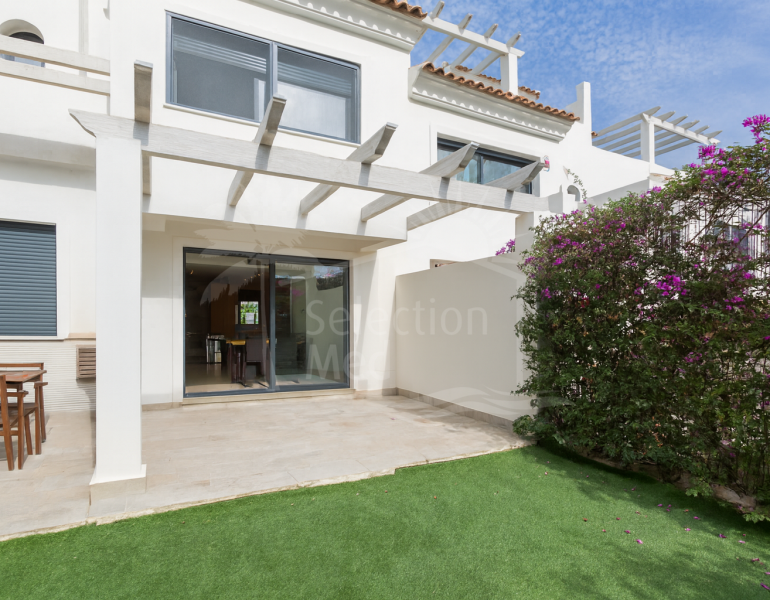 Elégant, trois chambres à coucher maison de ville située dans la commune fermée d'Agra Residencial, un charmant complexe de style méditerranéen de 47 maisons spacieuses situé à côté d'El Campanario Golf & Country Club, au cœur du prestigieux Triangle d'Or...
