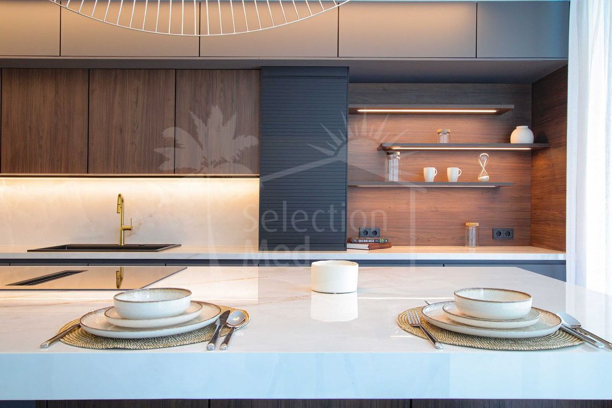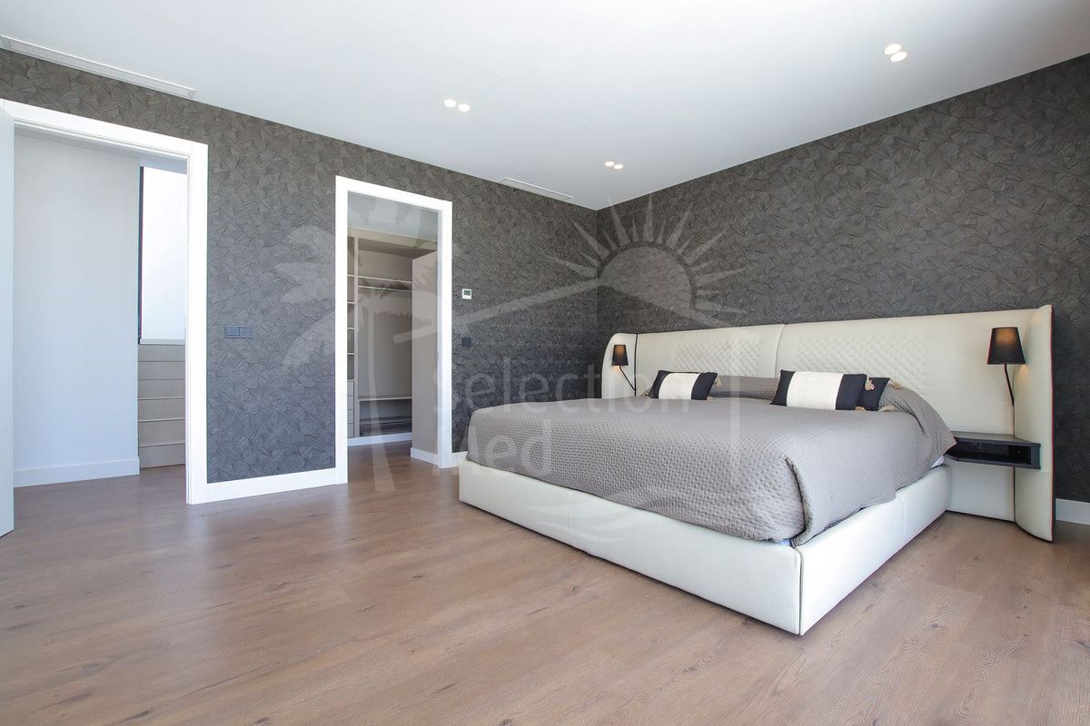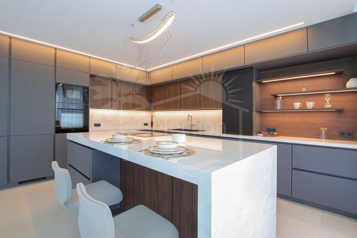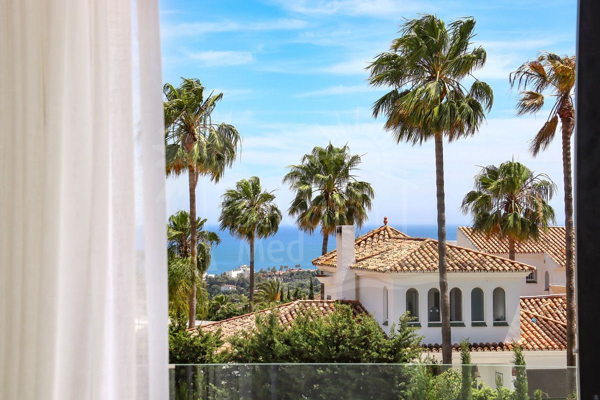 Cette superbe villa dispose de 4 chambres, 4 salles de bains et 1 WC, répartis sur 3 étages. Au rez-de-chaussée, vous pourrez profiter d'une vue partielle sur la mer, tandis que le premier étage et le solarium offrent une vue panoramique spectaculaire sur la mer, les montagnes et le golf.