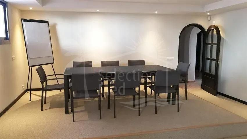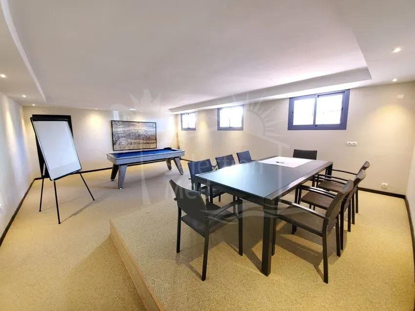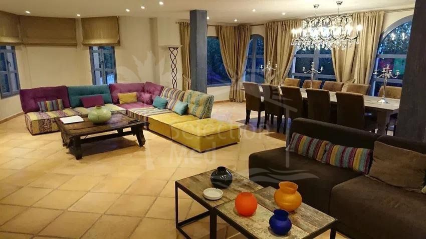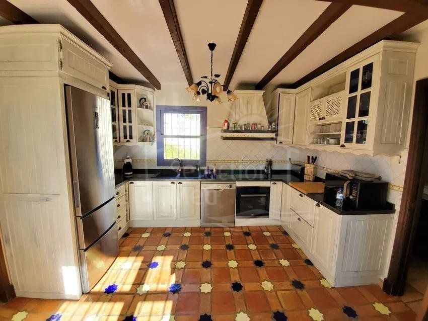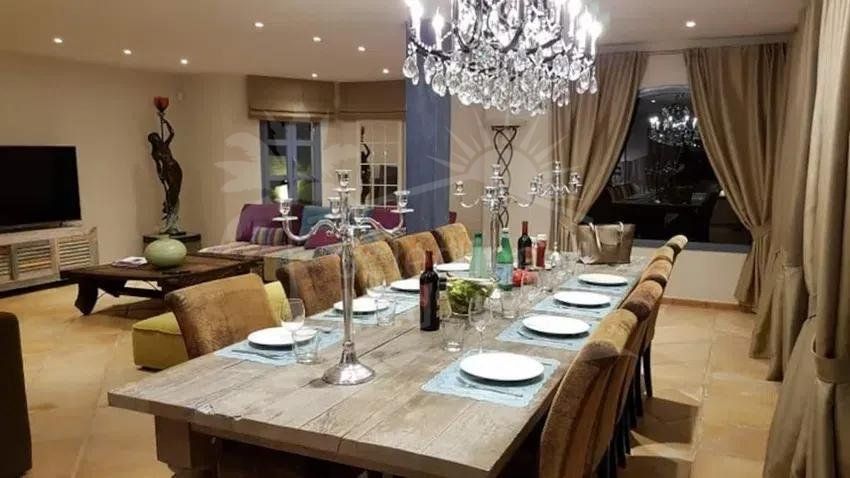 À l'intérieur, la villa dispose d'un salon spacieux et d'une salle à manger dédiée, tous deux bénéficiant d'une vue agréable sur le jardin et la piscine. La disposition est conçue pour maximiser la lumière naturelle et créer une atmosphère accueillante. Les résidents apprécieront la proximité des commodités locales, des magasins, des restaurants, des écoles et des transports, ainsi que la villa à proximité de la mer et de la plage, ce qui en fait un choix idéal pour ceux qui apprécient la commodité et le style de vie.