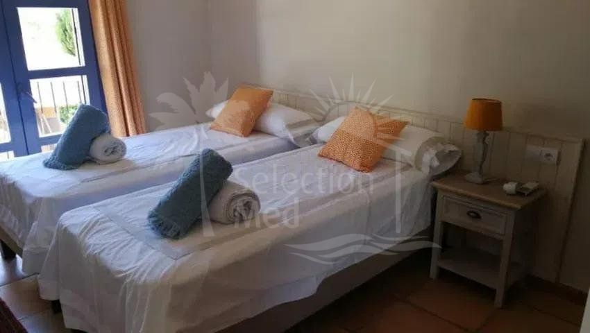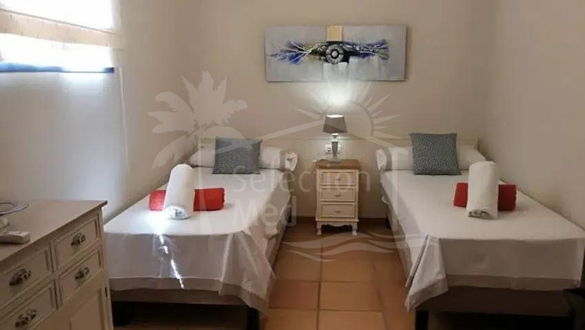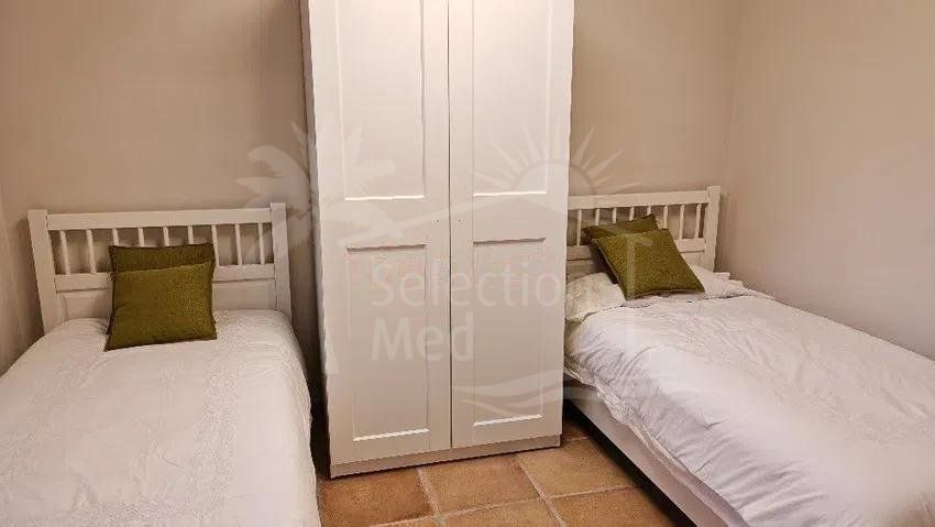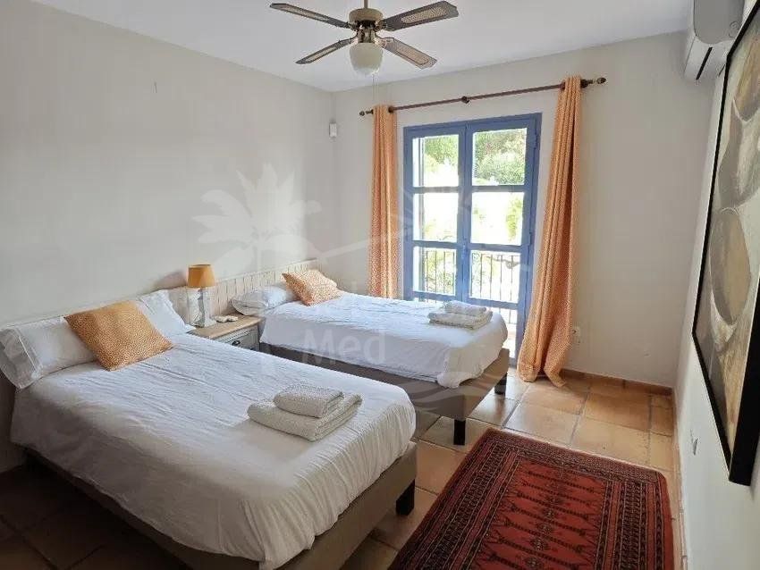 La propriété se trouve sur un terrain substantiel de 1680m2, avec un jardin privé et une grande piscine privée, idéal pour la détente et les rassemblements extérieurs. La villa est en bon état et bénéficie de commodités modernes telles que la climatisation, assurant le confort tout au long de l'année. Le garage privé et la salle de stockage offrent des solutions pratiques pour le stationnement et l'espace supplémentaire.