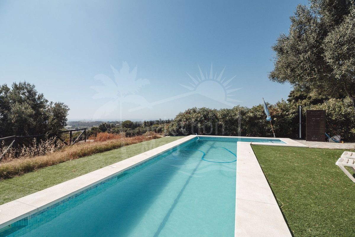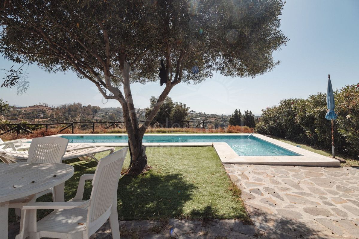 Villa à vendre à Estepona avec 4 chambres, 4 salles de bains, construit à 2005 et a piscine (privé), garage et jardin (privé). Dimensions: 300m² construit, 4100m² parcelle et 12m² terrasse.