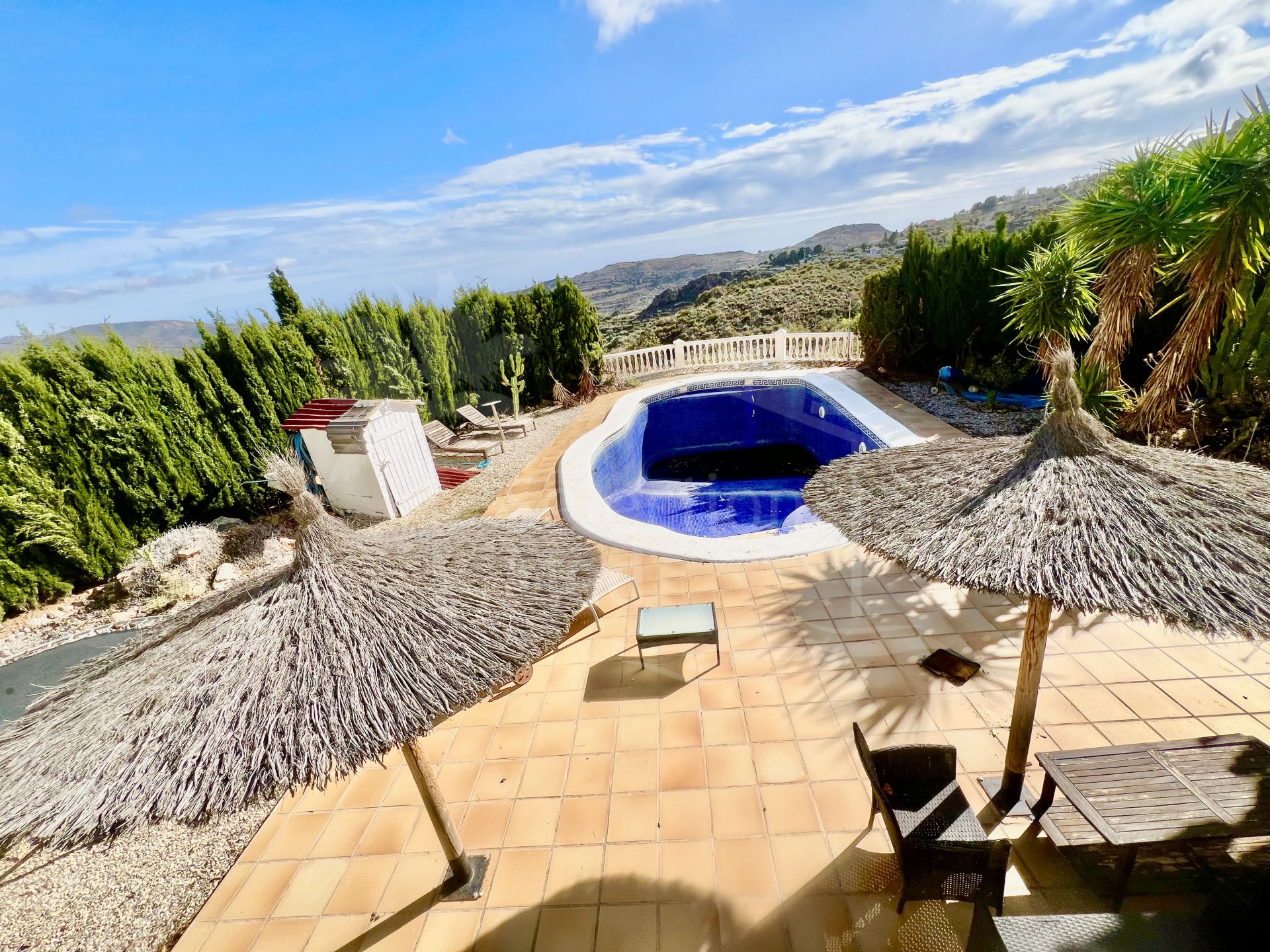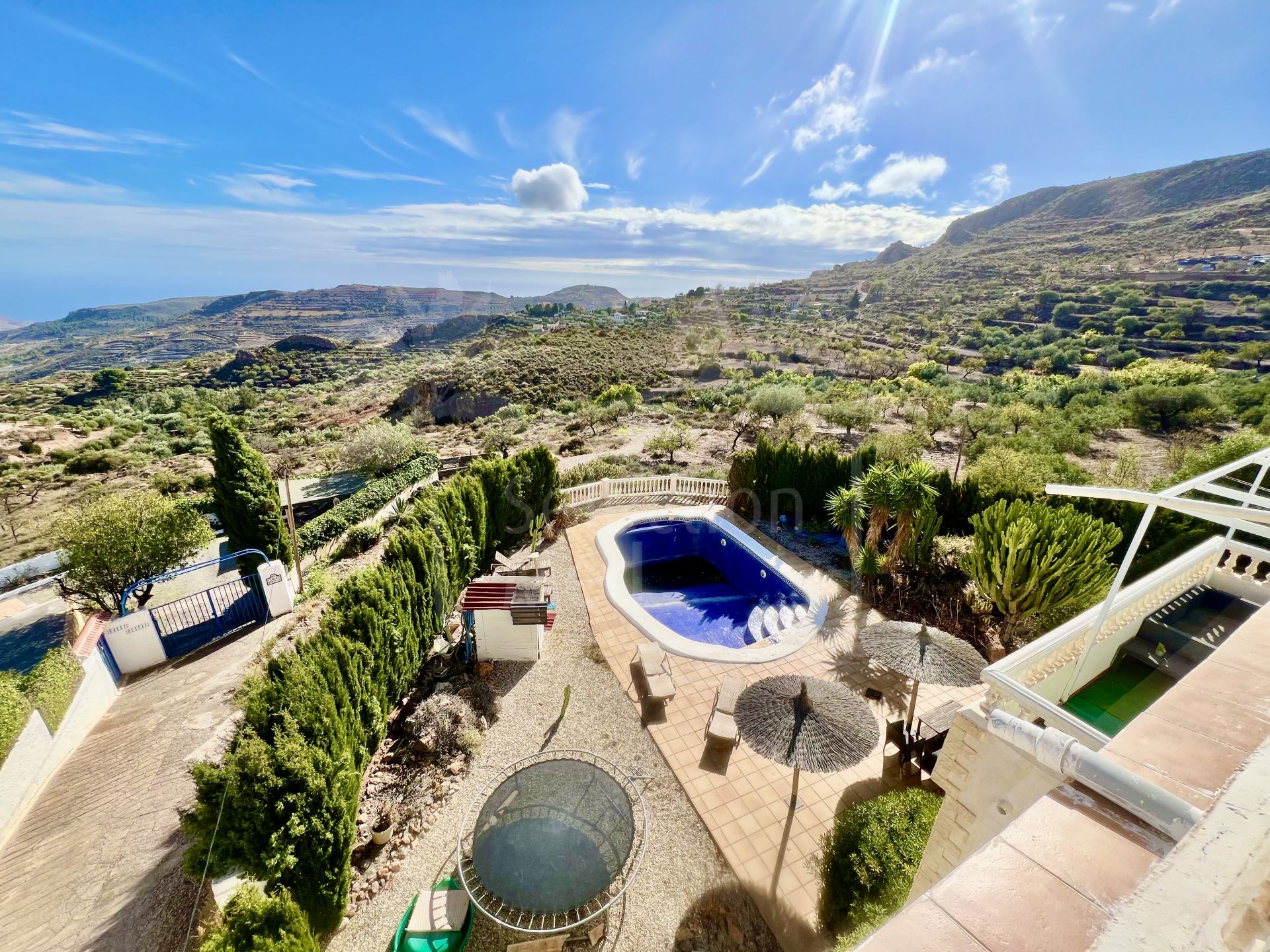 Ce village familial de trois niveaux, situé dans le beau village de Felix, Almería, offre des intérieurs spacieux, une intimité totale et une vue exceptionnelle de chaque usine. Il se trouve à seulement 15 minutes en voiture de la plage et à 5 minutes du centre commercial principal et du quartier des restaurants. La propriété comprend cinq chambres bien réparties qui garantissent l'intimité, une commode sur mesure et un appartement entièrement indépendant avec cuisine propre et entrée séparée, idéal pour les clients ou la famille. Le logement principal a également son propre accès indépendant. À l'intérieur, le manoir dispose d'une cuisine moderne et lumineuse avec îlot central, grand salon avec cheminée, salle polyvalente supplémentaire et salles de bains bien équipées. Chaque niveau s'ouvre sur de grandes terrasses donnant sur la piscine, les jardins, les montagnes et la mer latérale. La plante basse offre un grand patio avec accès direct à la piscine et au jardin, tandis que les plantes supérieures bénéficient de grandes terrasses et d'une vue panoramique exceptionnelle. Jardins consolidés, piscine privée et plusieurs zones de vie en plein air complètent l'extérieur. Situé dans l'une des meilleures zones de Felix, connu pour son charme, son bon environnement et son microclimat à faible humidité, ce village allie espace, intimité et environnement exceptionnel.