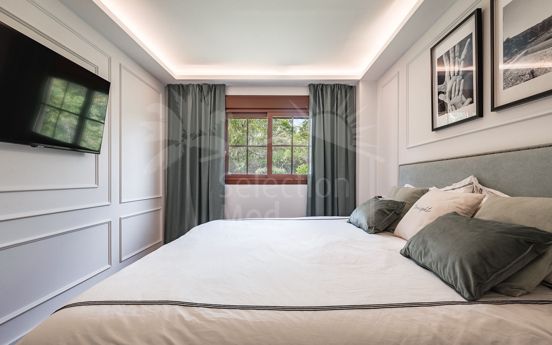 Appartement entièrement rénové de 3 chambres avec jardin, orienté sud-ouest, dans Gazules del Sol, un complexe entièrement clôturé et sécurisé situé à distance de marche de l'école internationale Atalaya, à Benahavís.