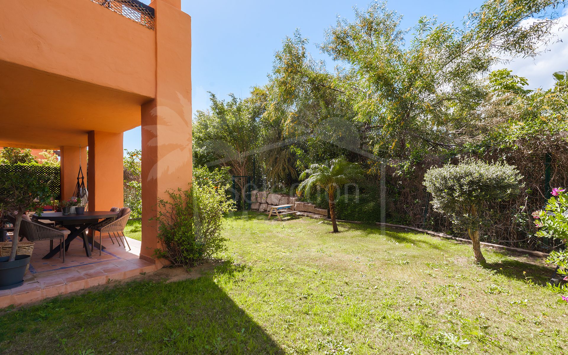 Appartement de jardin entièrement rénové à Gazules del Sol, un complexe fermé proche des commodités à Benahavís