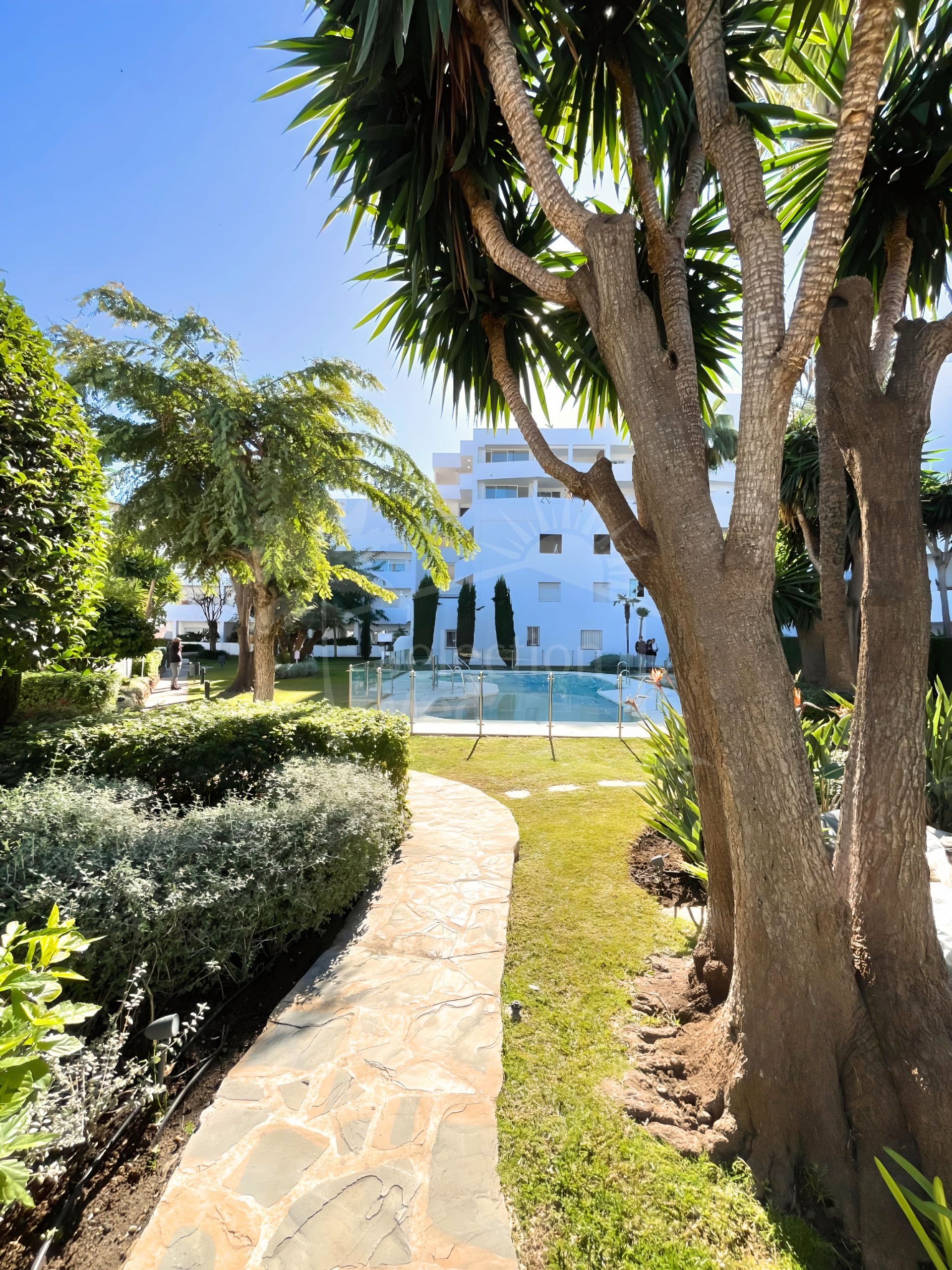 Appartement rez de chaussée à vendre à Jardines de Andalucia, Nueva Andalucia avec 3 chambres, 2 salles de bains, 1 salles de bain en-suite et a piscine (communautaire) et jardin (privé). Dimensions: 103m² construit et 95m² parcelle.