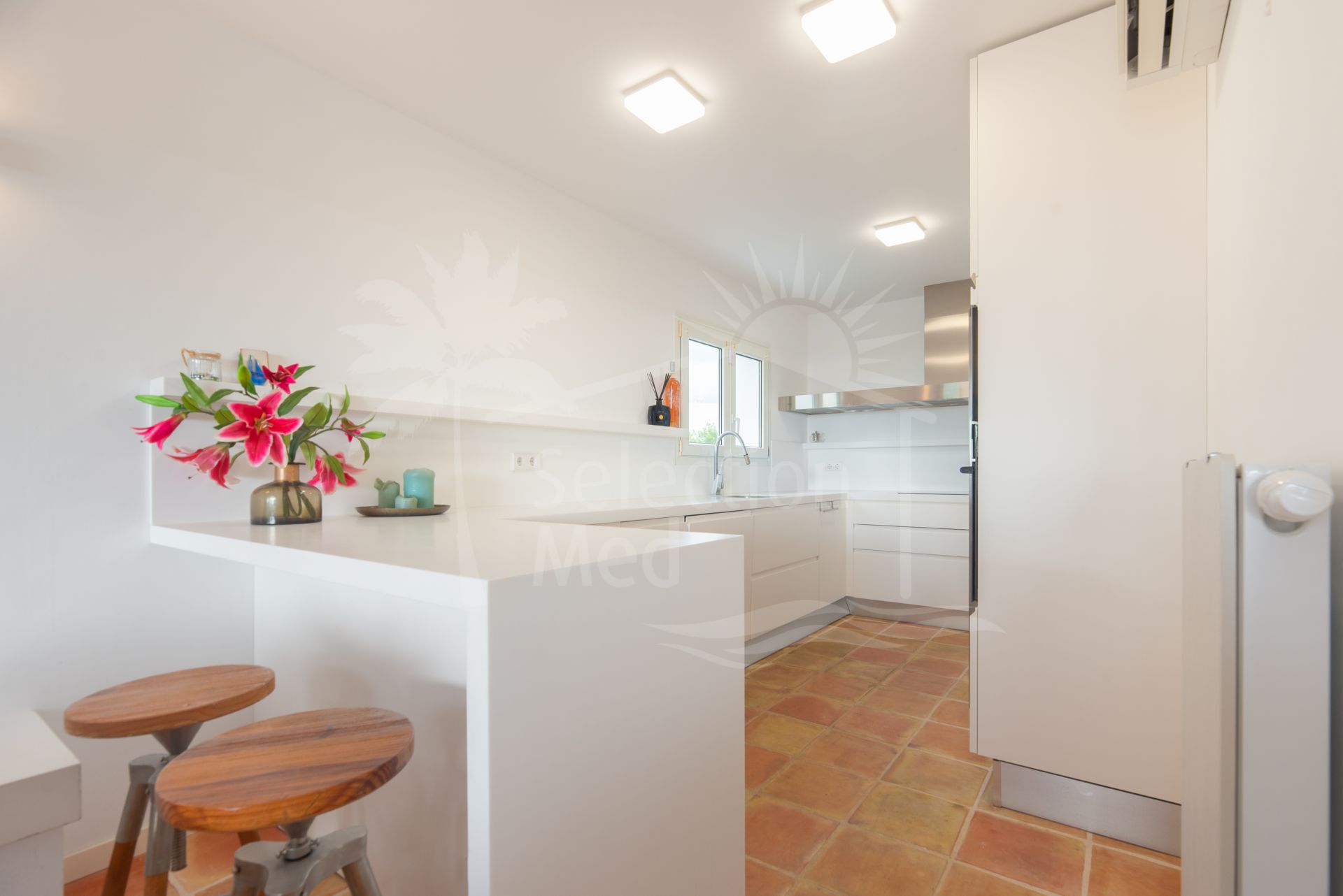 Situé à Can Pep Simó, un quartier résidentiel consolidé à quelques minutes de la ville d'Ibiza et du port de sport, cette villa offre un environnement calme avec vue sur la mer et Dalt Vila.