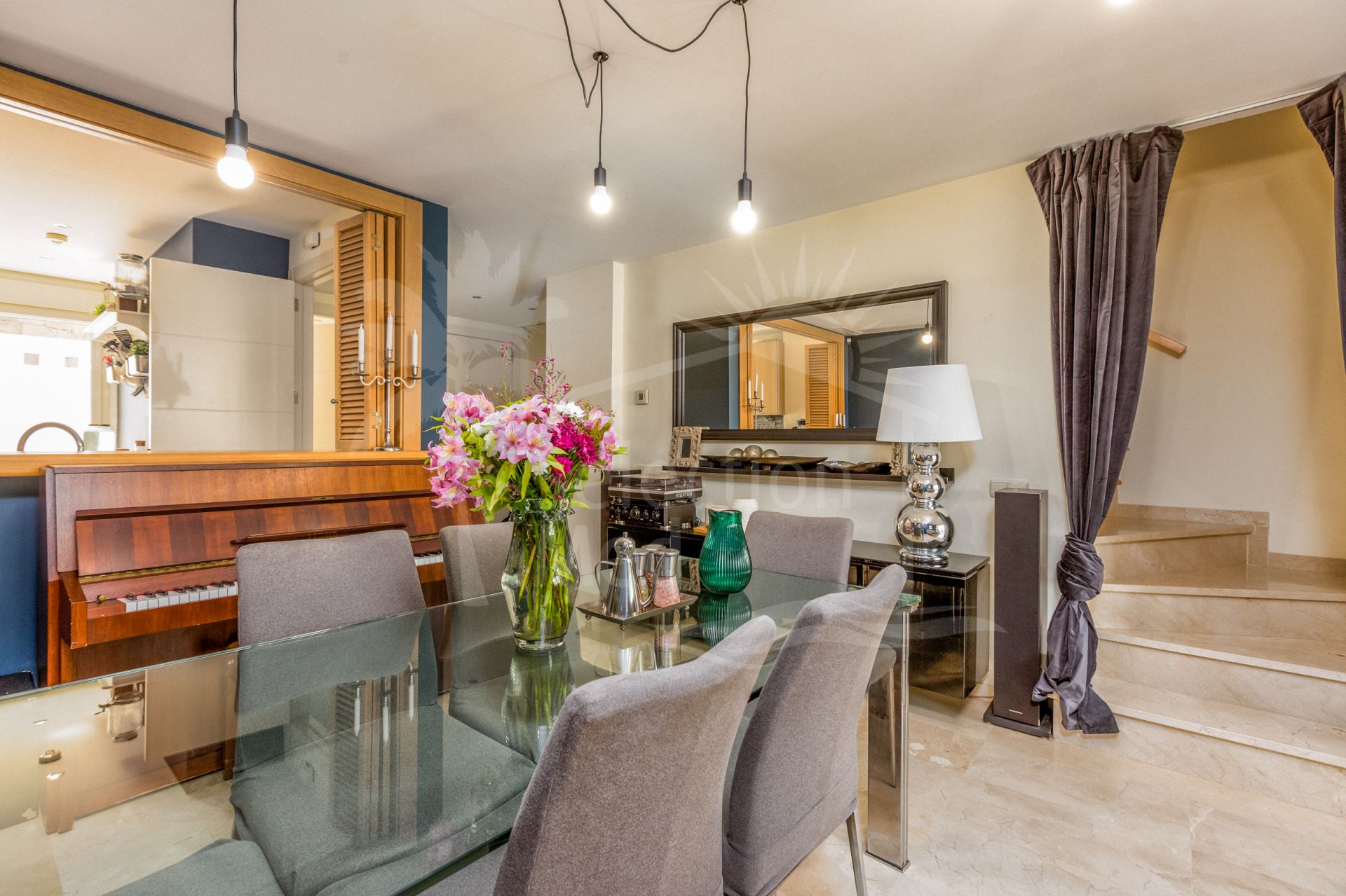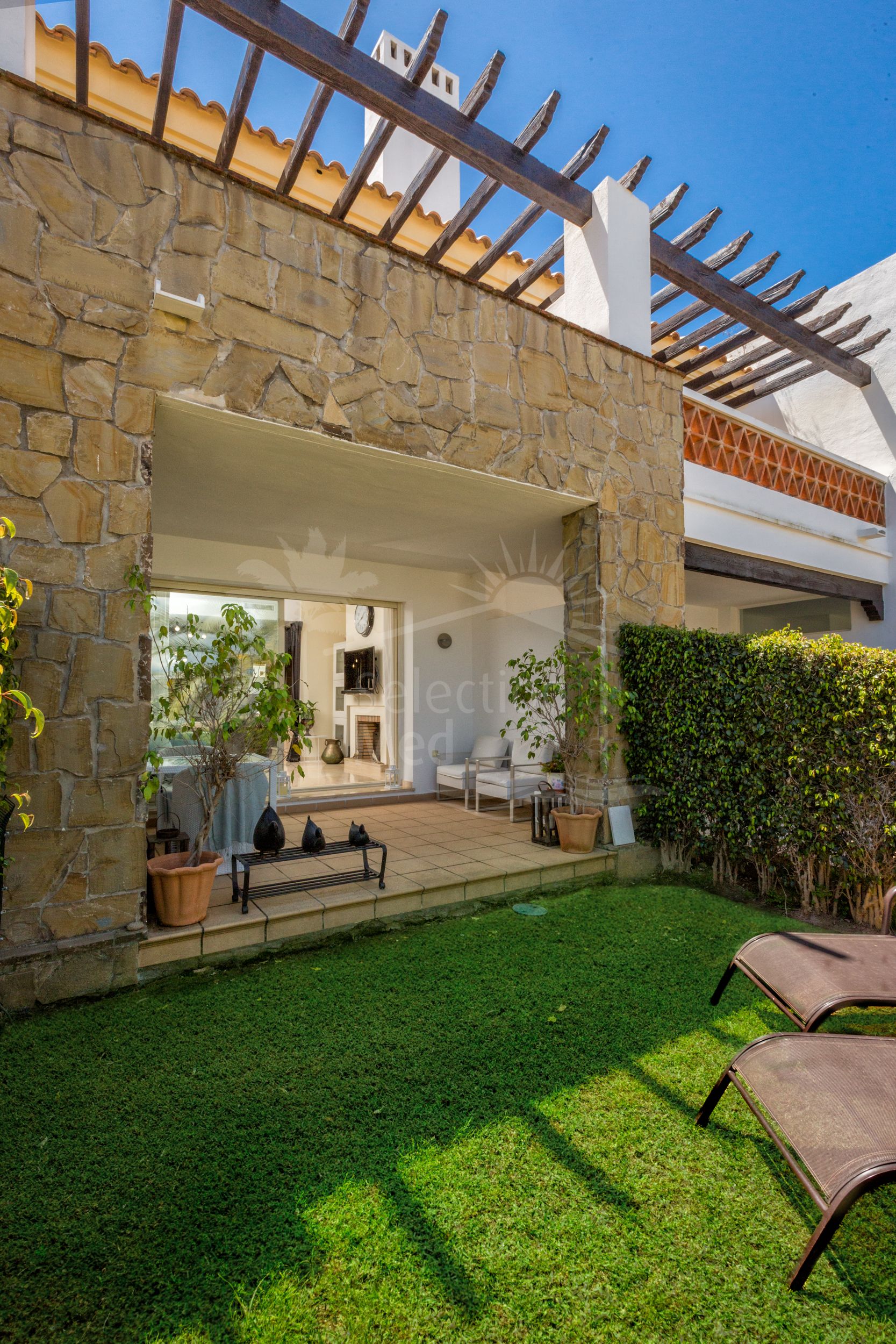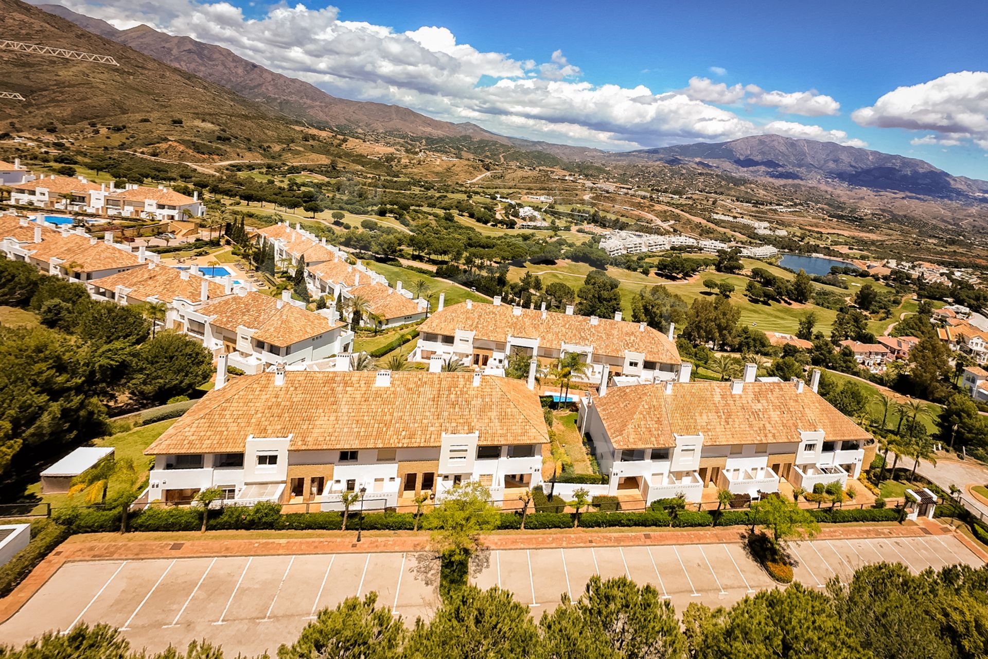 Niché dans la communauté fermée exclusive de Monte Alto, au sein de La Cala Golf, Mijas, cette élégante maison de ville offre trois chambres spacieuses et trois salles de bains modernes, ainsi qu'une toilette d'hôtes; idéal pour ceux qui recherchent un style de vie raffiné ou un investissement de maison de vacances intelligente. Conçue avec soin et magnifiquement meublée, la propriété dispose d'un espace de vie généreux avec une cheminée confortable, une cuisine séparée entièrement équipée et un sol en marbre de haute qualité. Venez profiter d'un jardin privé avec une vue imprenable sur les montagnes et le golf de La Cala. Les résidents bénéficient d'un accès à deux piscines communes et à des jardins bien entretenus, tous situés dans un quartier paisible mais bien relié à quelques minutes des plages, du club de golf, du spa, des restaurants et des équipements essentiels. Avec Marbella et l'aéroport de Malaga à quelques minutes en voiture, cette maison offre un mélange parfait de nature, de confort et de luxe côtier. D'autres caractéristiques comprennent : air conditionné chaud et froid et parking pour une voiture.