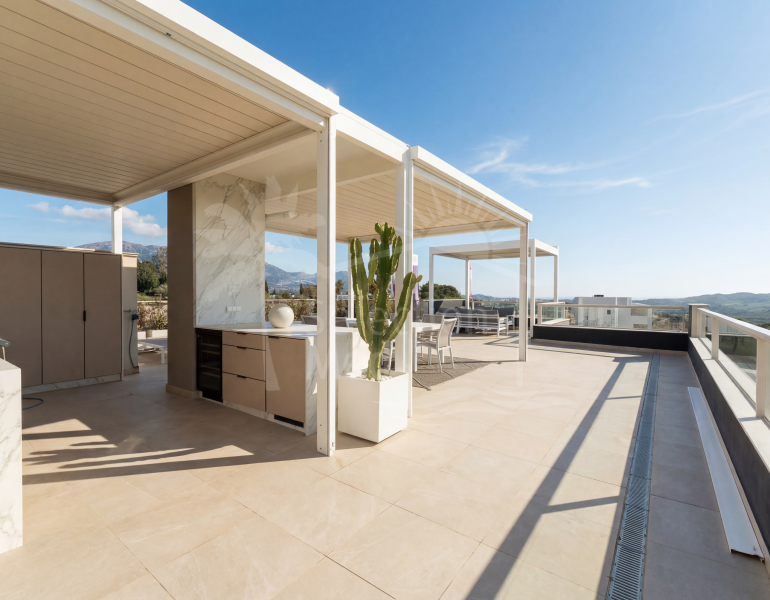 Appartement Terrasse à vendre à La Cala Golf Resort, Mijas Costa avec 3 chambres, 2 salles de bains, 2 salles de bain en-suite, 3 toilets, construit à 2020 et a piscine (communautaire), garage (privé) et jardin (communautaire). Dimensions: 353m² construit,...