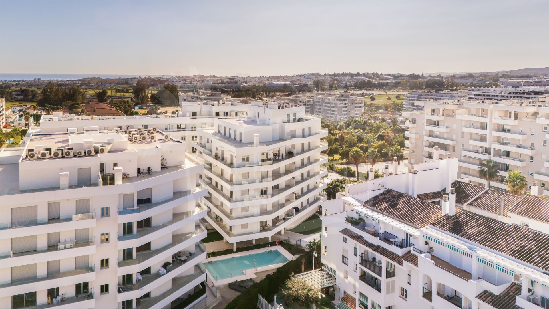 Cette propriété dispose des commodités suivantes: services de proximité, vue sur la rue, transport proche, À proximité des commerces, climatisation, chauffage par le sol (salles de bain), près de la ville, proche des écoles, entièrement meublé, vue mer, vue montagne, parc pour enfants proche, golf à proximité, aérothermie, neuf, excellent état, vue panoramique et vue urbaine.