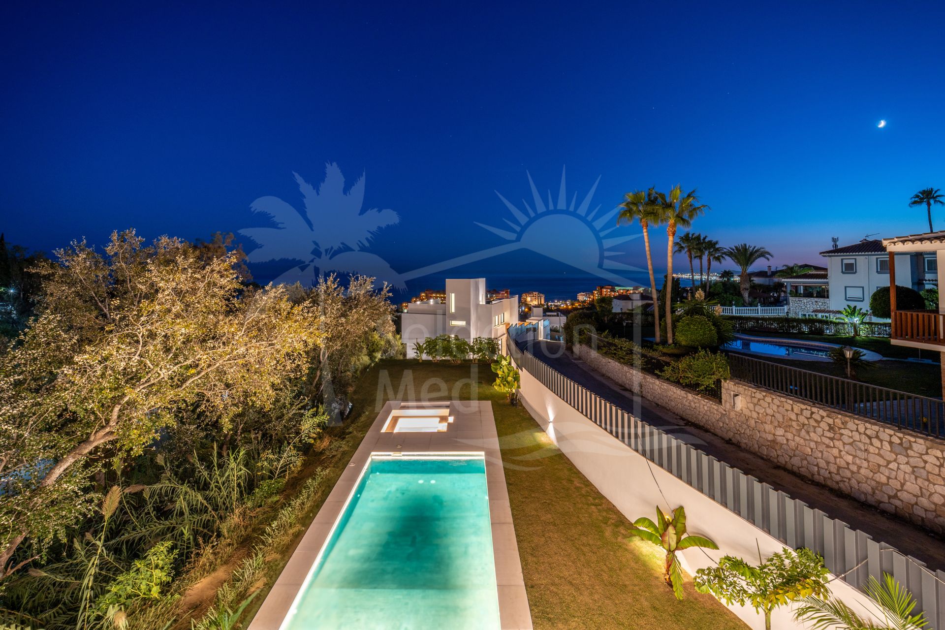 Villa à vendre à La Capellania, Benalmadena avec 5 chambres, 5 salles de bains, construit à 2023 et a piscine (privé), garage (privé) et jardin (privé). Dimensions: 750m² construit et 777m² parcelle.
