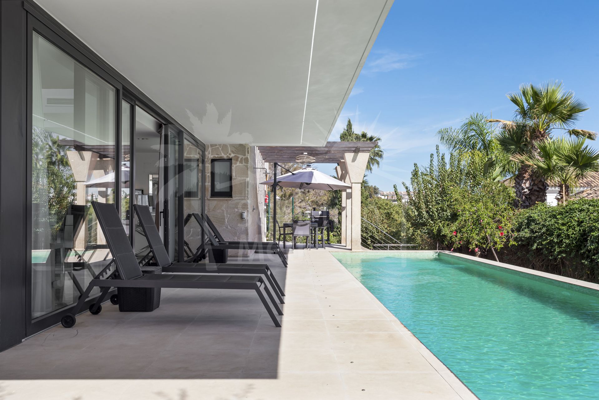 Maison à vendre à La Cerquilla, Nueva Andalucia avec 5 chambres, 5 salles de bains, 1 salles de bain en-suite et a piscine (privé), garage (privé) et jardin (privé). Dimensions: 635m² construit et 849m² parcelle.