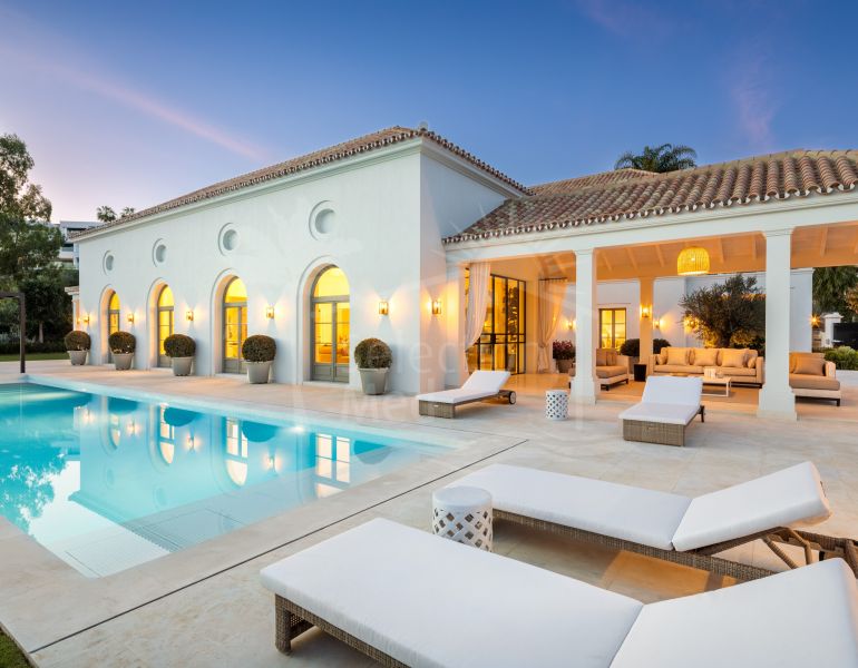 Une grande villa récemment rénovée avec une fusion parfaite entre design contemporain et style andalou. Situé dans le quartier résidentiel recherché de La Cerquilla. Face sud avec vue sur La Concha. Privé et calme. A proximité toutes les commodités et...