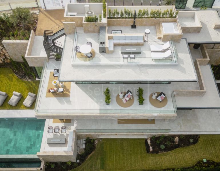 Villa à vendre à La Cerquilla, Nueva Andalucia avec 6 chambres, 6 salles de bains, 6 salles de bain en-suite, 2 toilets, construit à 2021 et a piscine (privé), garage (privé) et jardin (privé). Dimensions: 921m² construit, 2104m² parcelle et...