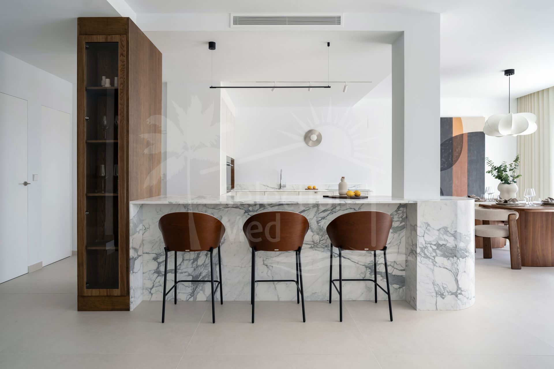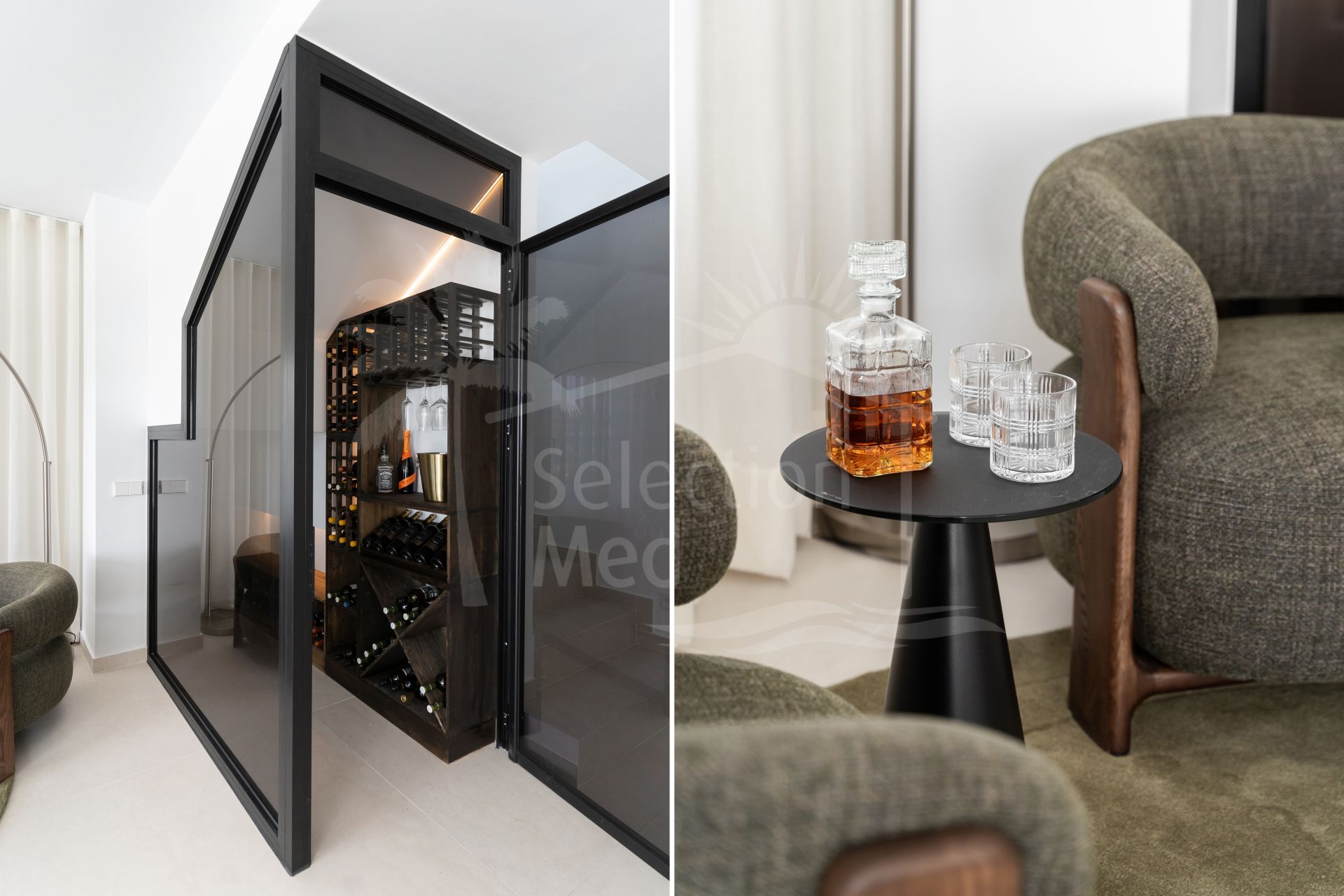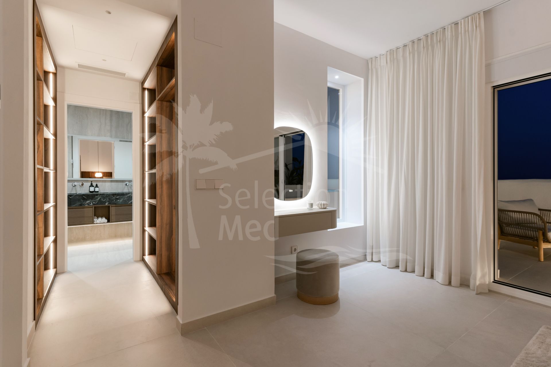 Cette propriété, orientation sud, dispose des commodités suivantes: À proximité des commerces, proche des écoles, vue mer, surveillancecameras, vue montagne, résidence fermée, internet – fibre optique, dressing, vue panoramique, services de proximité, climatisation, chauffage par le sol (salles de bain), entièrement meublé, proche de la mer/plage, golf à proximité, closetorestaurants, cityviews, cuisine ouverte, meubles en option, double vitrage, neuf, excellent état, garageincludedinprice, bon état, service de sécurité 24h et toilette d'invités.