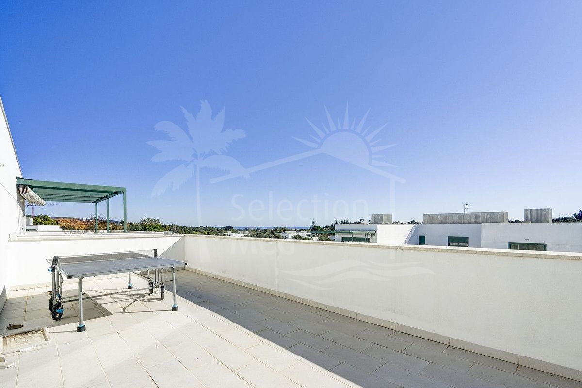 Appartement à vendre à La Reserva, Sotogrande avec 3 chambres, 4 salles de bains, construit à 2022 et a piscine (communautaire) et jardin (communautaire). Dimensions: 202m² construit, 389m² parcelle, 171m² intérieur et 187m² terrasse.