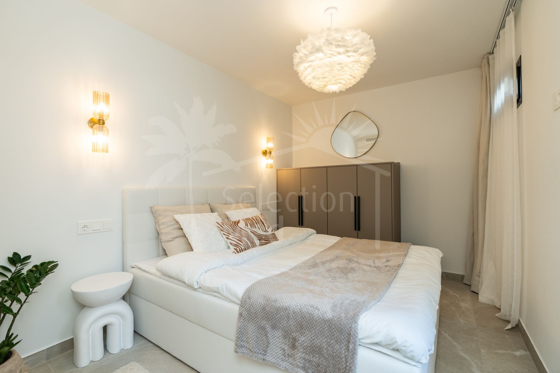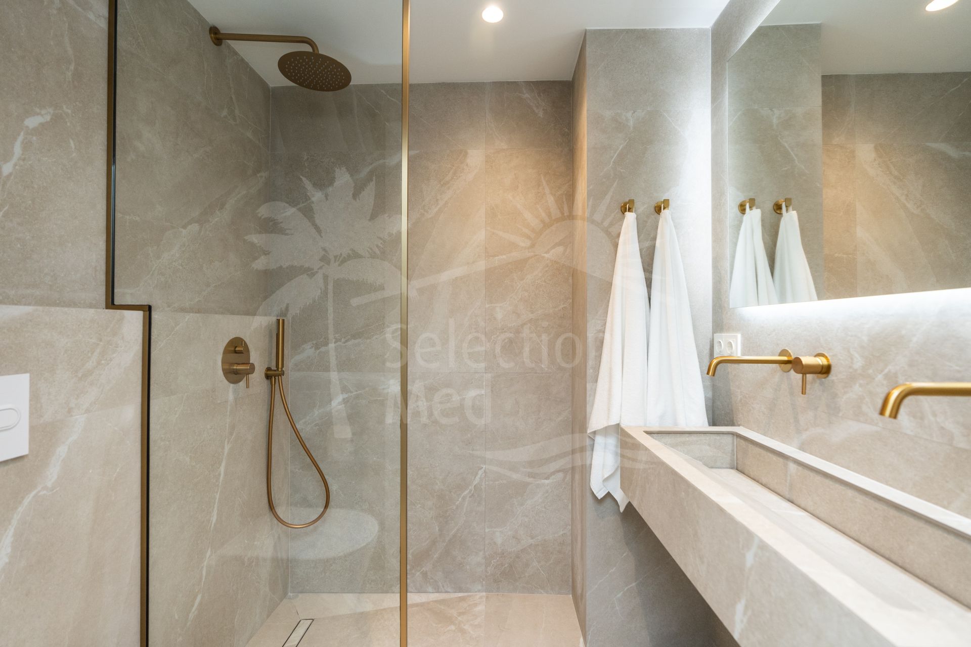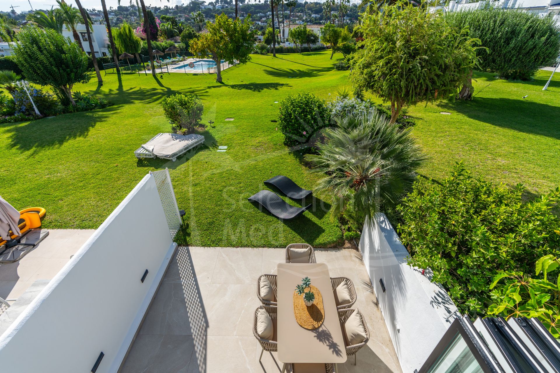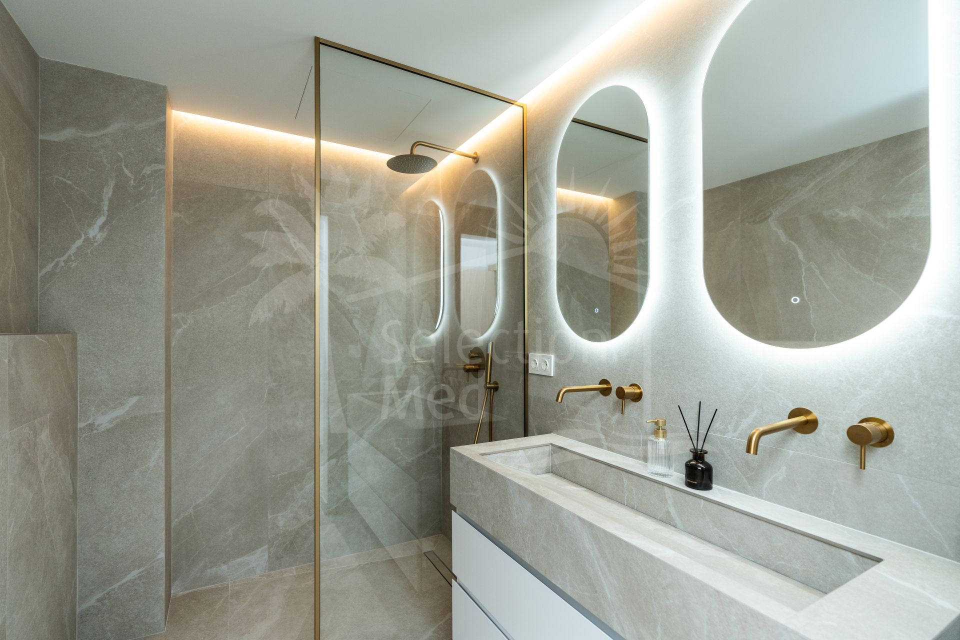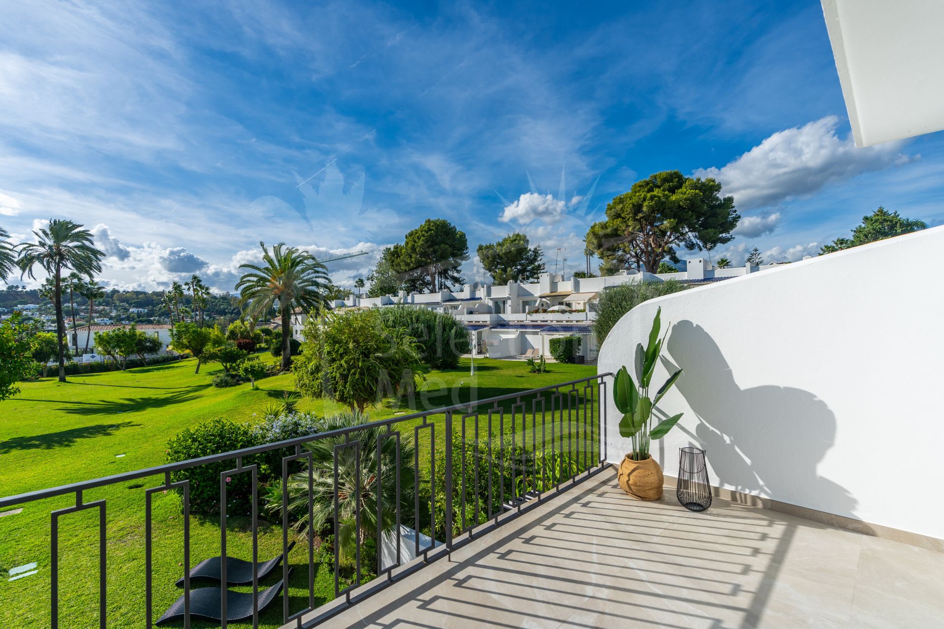 Cette propriété, orientation sud-ouest, dispose des commodités suivantes: terrasse privée, cuisine équipée, À proximité des commerces, près de la ville, près du port, proche des écoles, vue montagne, vue sur le golf, climatisation individuelle, résidence fermée, vue sur le jardin, vue sur la piscine, services de proximité, maturejardens, transport proche, climatisation, chauffage par le sol (salles de bain), entièrement meublé, cuisine entièrement adaptée, pièce de service, parc pour enfants proche, proche de la mer/plage, golf à proximité, closetorestaurants, terrasse découverte, cuisine ouverte, balcon, double vitrage, excellent état, récemment rénové et toilette d'invités.