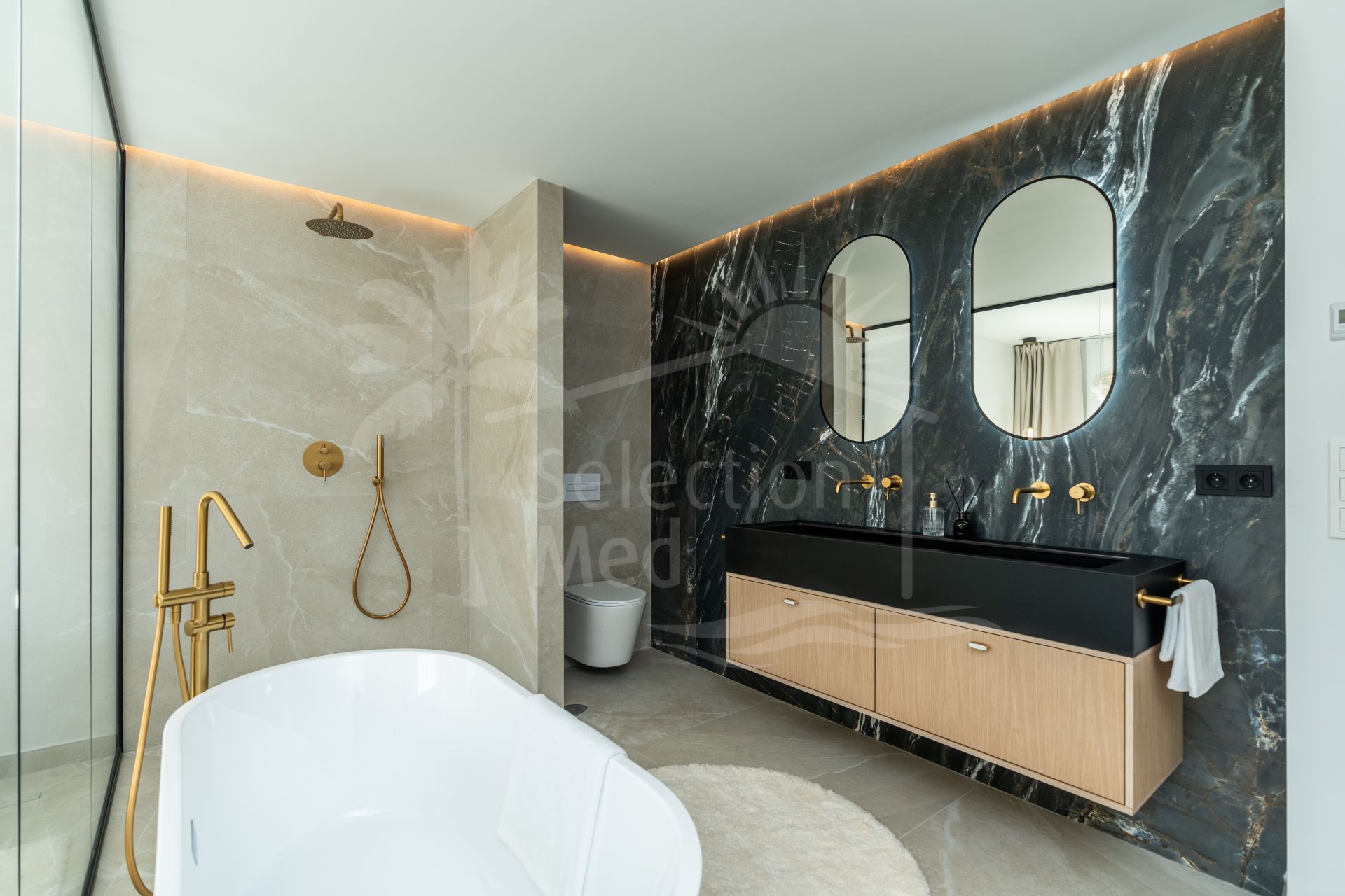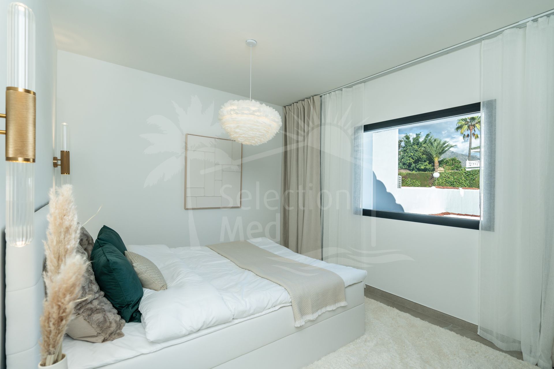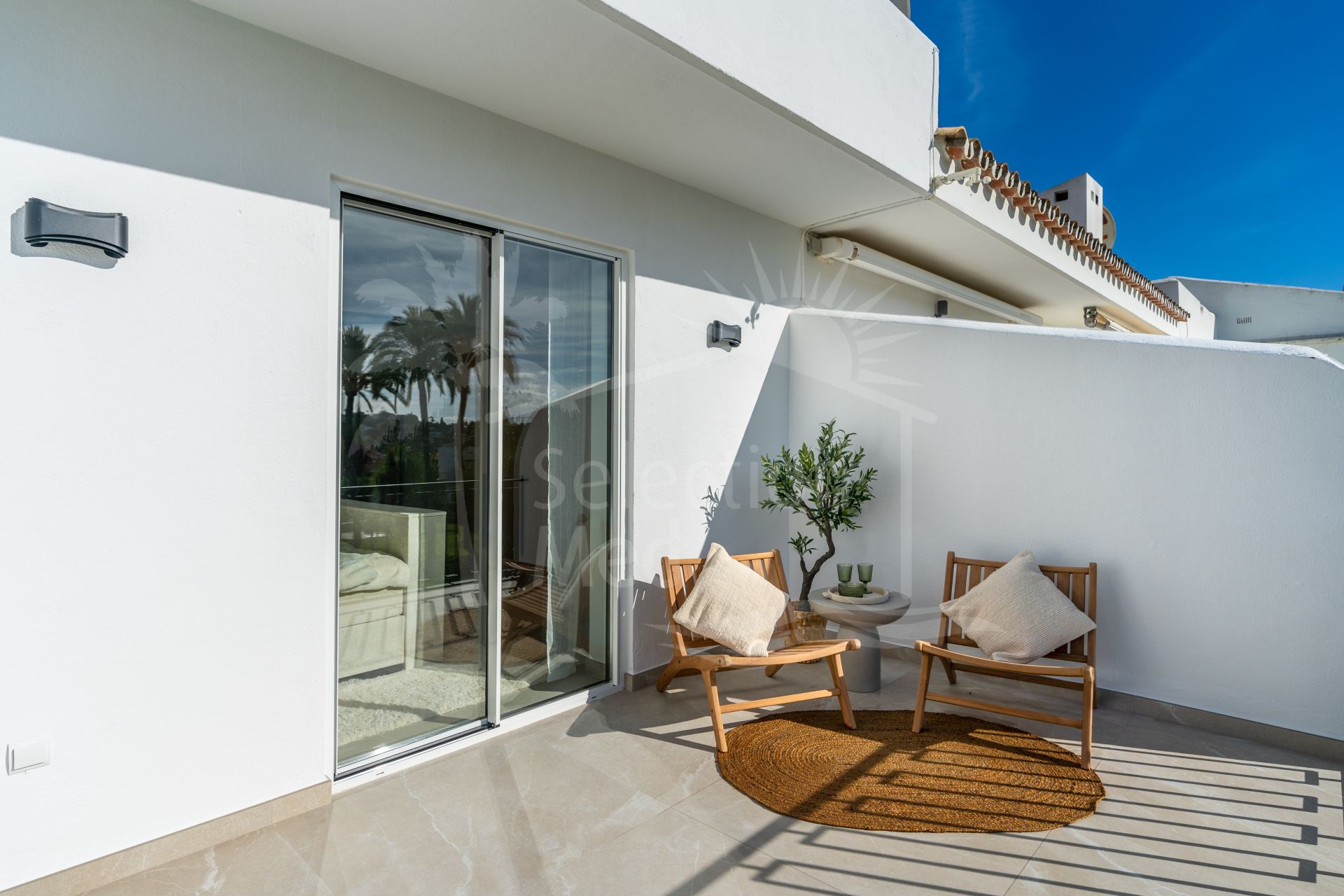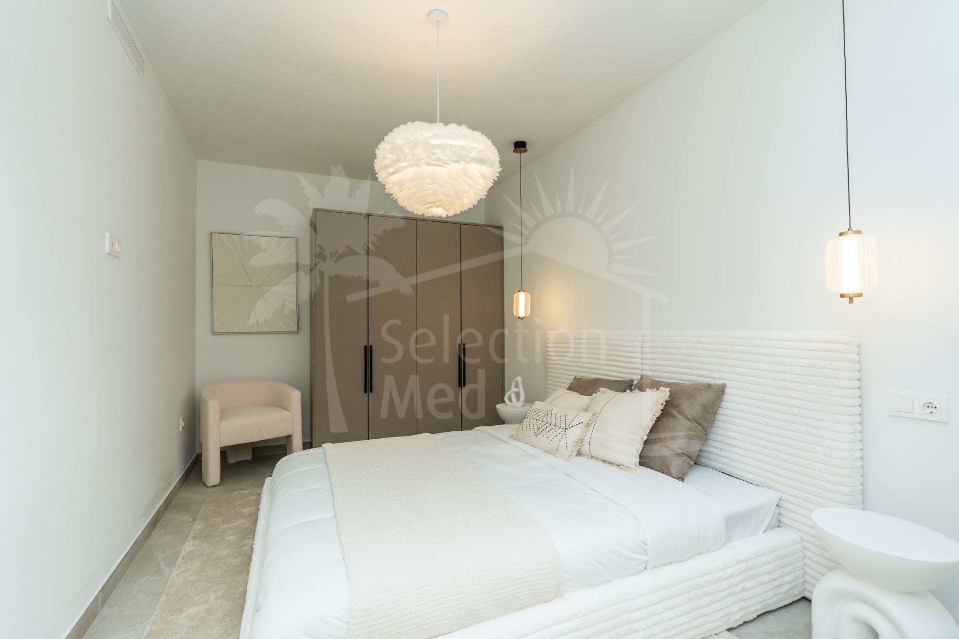 Cette propriété, orientation sud-ouest, dispose des commodités suivantes: terrasse privée, cuisine équipée, À proximité des commerces, près de la ville, près du port, proche des écoles, vue montagne, vue sur le golf, climatisation individuelle, résidence fermée, vue sur le jardin, vue sur la piscine, services de proximité, maturejardens, transport proche, climatisation, chauffage par le sol (salles de bain), entièrement meublé, cuisine entièrement adaptée, pièce de service, parc pour enfants proche, proche de la mer/plage, golf à proximité, closetorestaurants, terrasse découverte, cuisine ouverte, balcon, double vitrage, excellent état, récemment rénové et toilette d'invités.
