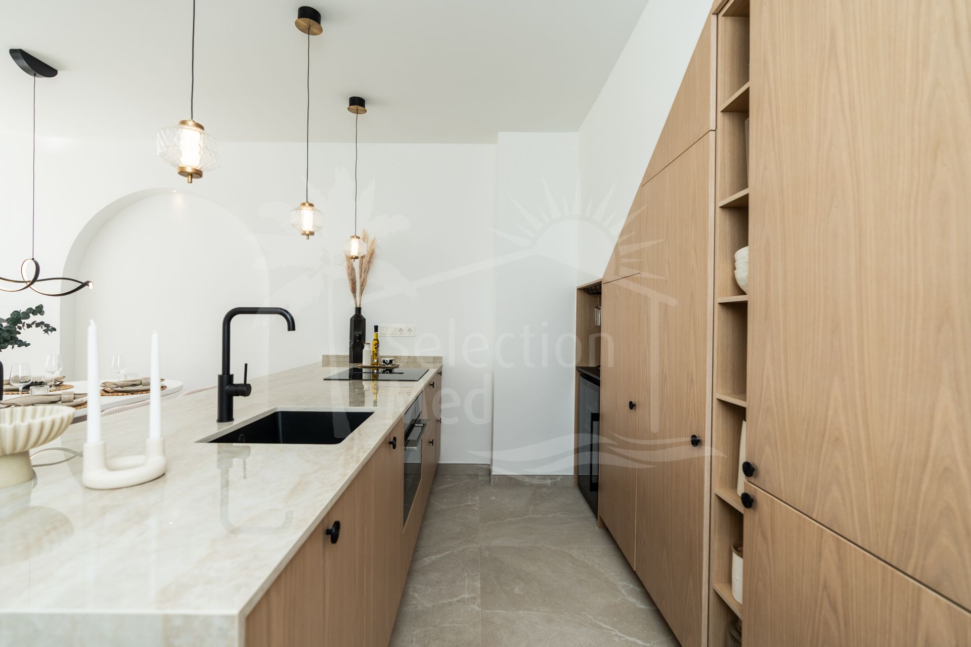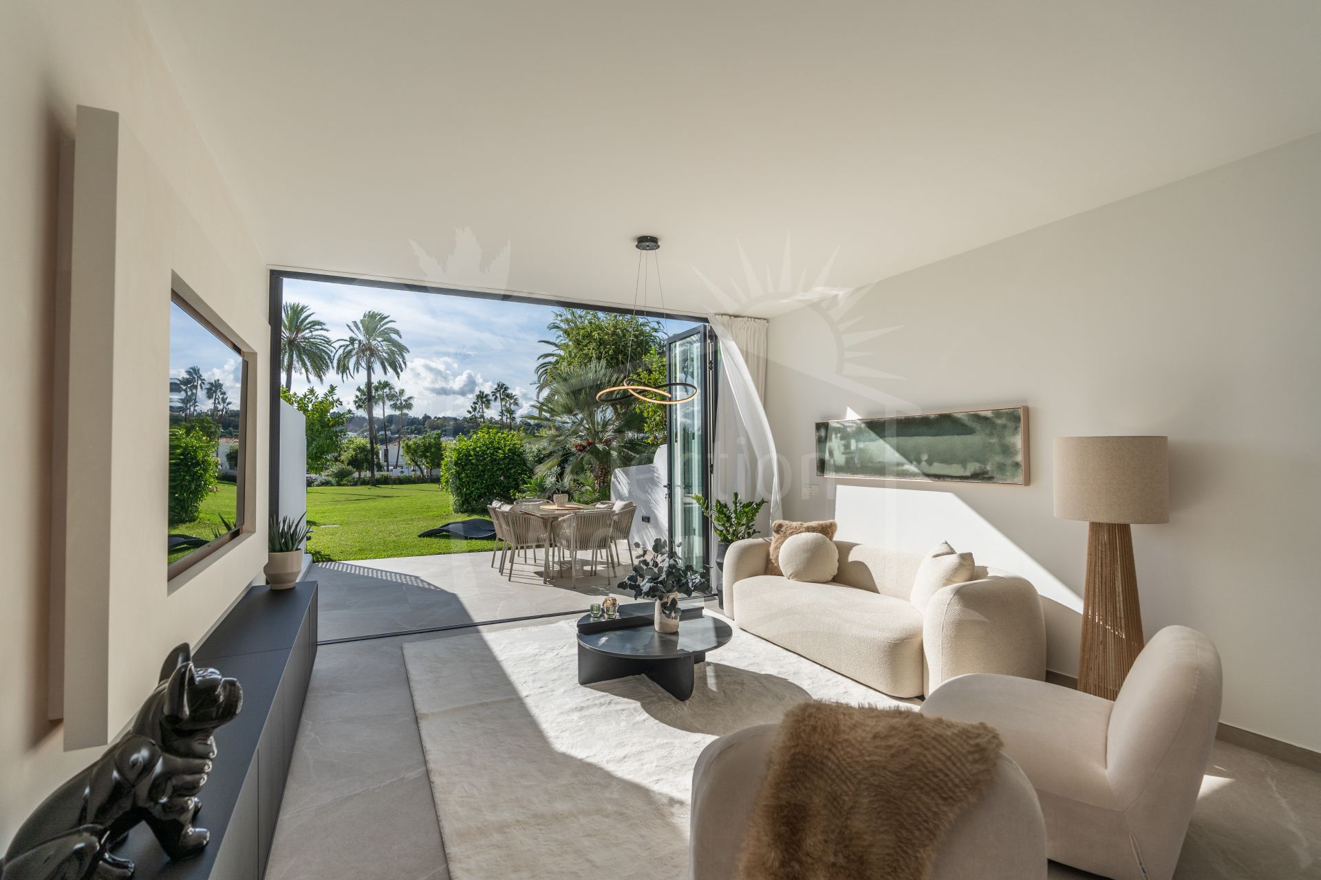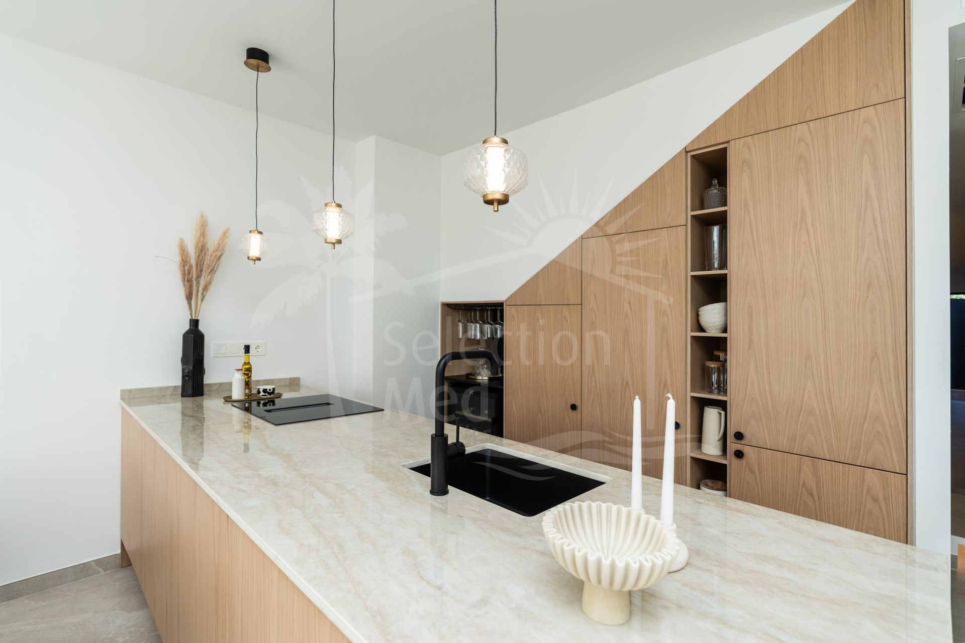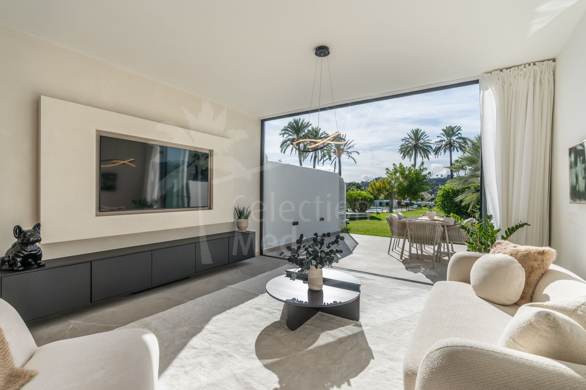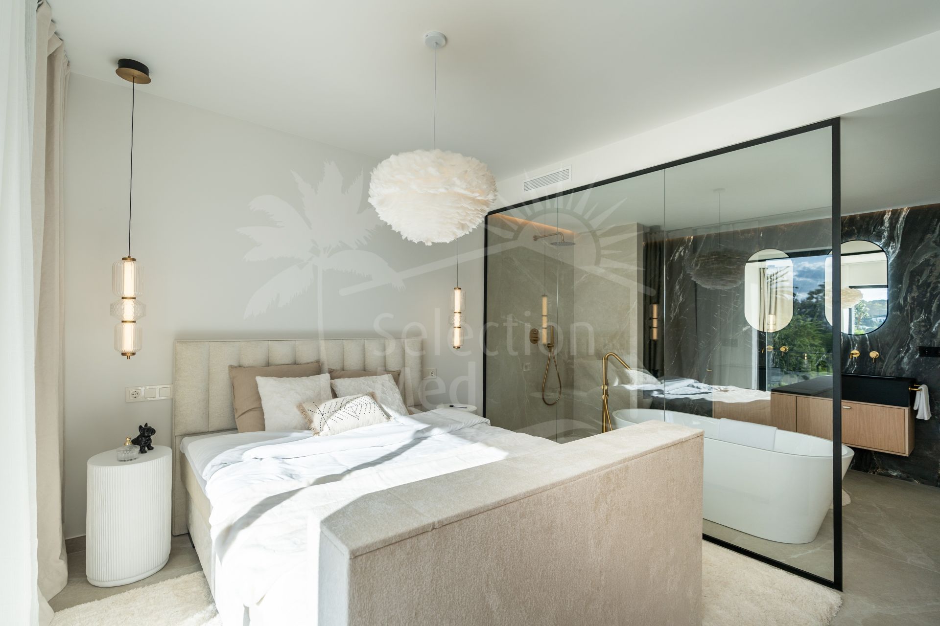 Cette propriété, orientation sud-ouest, dispose des commodités suivantes: terrasse privée, cuisine équipée, À proximité des commerces, près de la ville, près du port, proche des écoles, vue montagne, vue sur le golf, climatisation individuelle, résidence fermée, vue sur le jardin, vue sur la piscine, services de proximité, maturejardens, transport proche, climatisation, chauffage par le sol (salles de bain), entièrement meublé, cuisine entièrement adaptée, pièce de service, parc pour enfants proche, proche de la mer/plage, golf à proximité, closetorestaurants, terrasse découverte, cuisine ouverte, balcon, double vitrage, excellent état, récemment rénové et toilette d'invités.