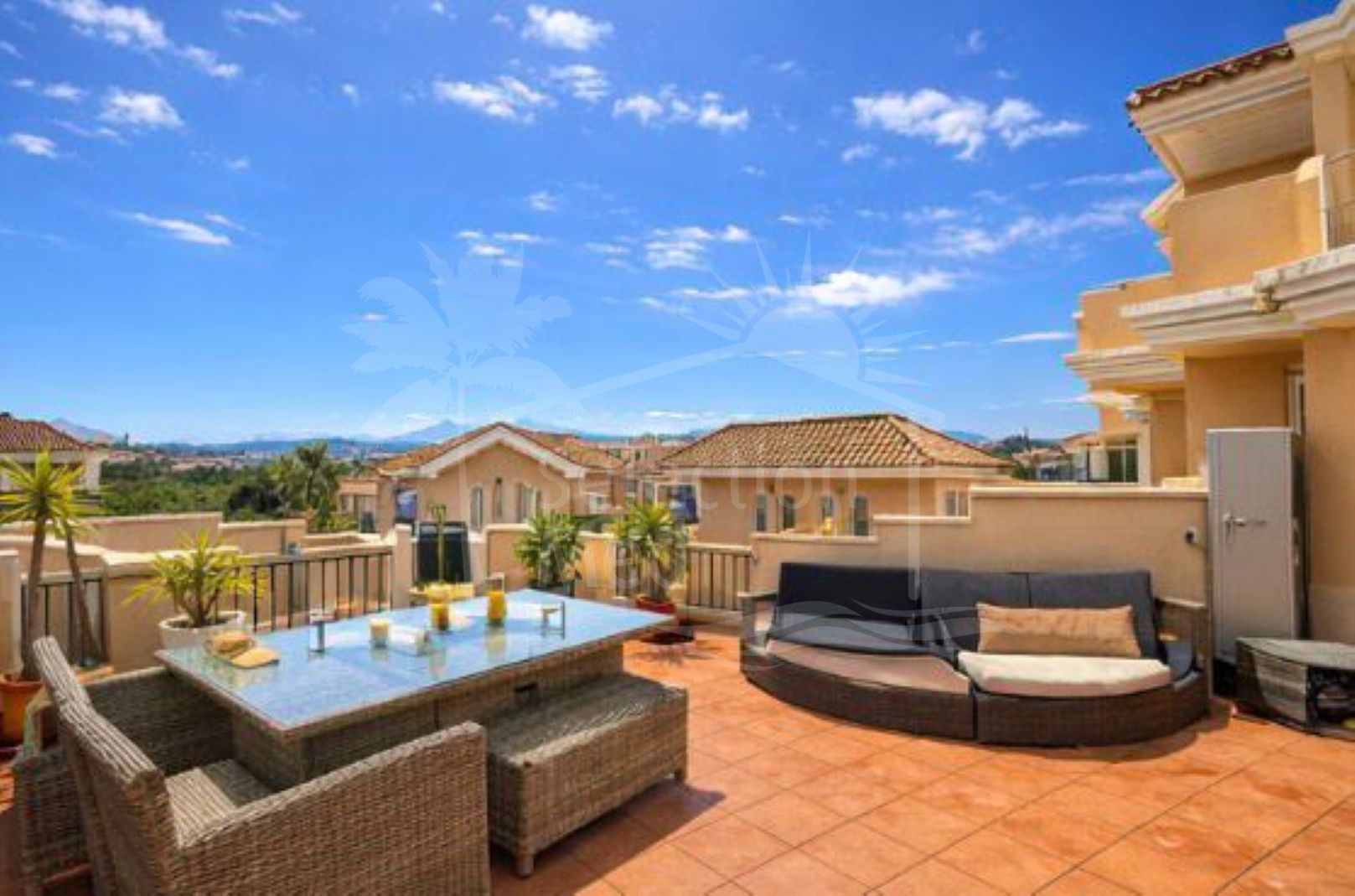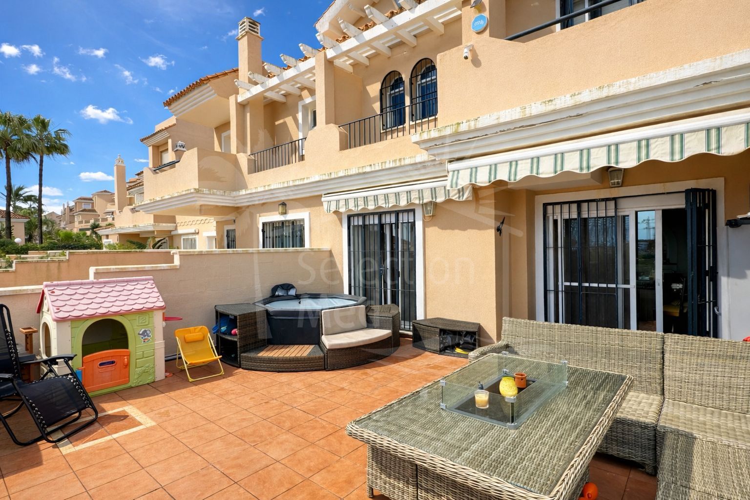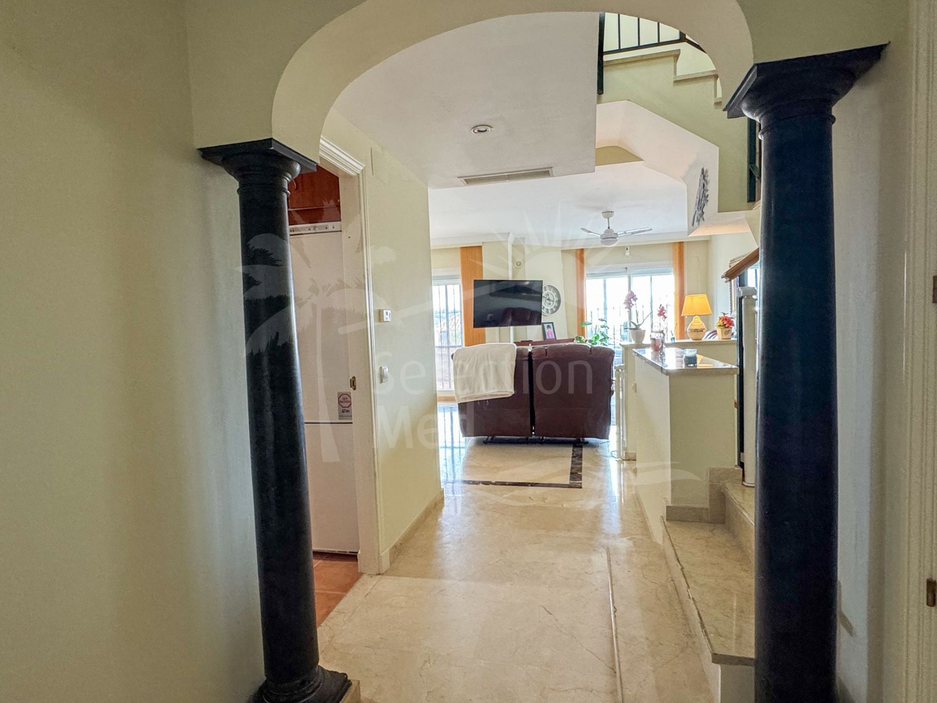 Située dans une communauté sécurisée et paysagée avec des jardins communautaires luxuriants et un accès facile aux vignobles, aux terrains de golf, aux plages du drapeau bleu et à Puerto de la Duquesa, cette maison allie tranquillité et confort exceptionnel sur la Costa del Sol, offrant une vue panoramique sur la mer et les montagnes, des espaces extérieurs privés et des équipements de qualité supérieure, y compris plusieurs grandes piscines communautaires.