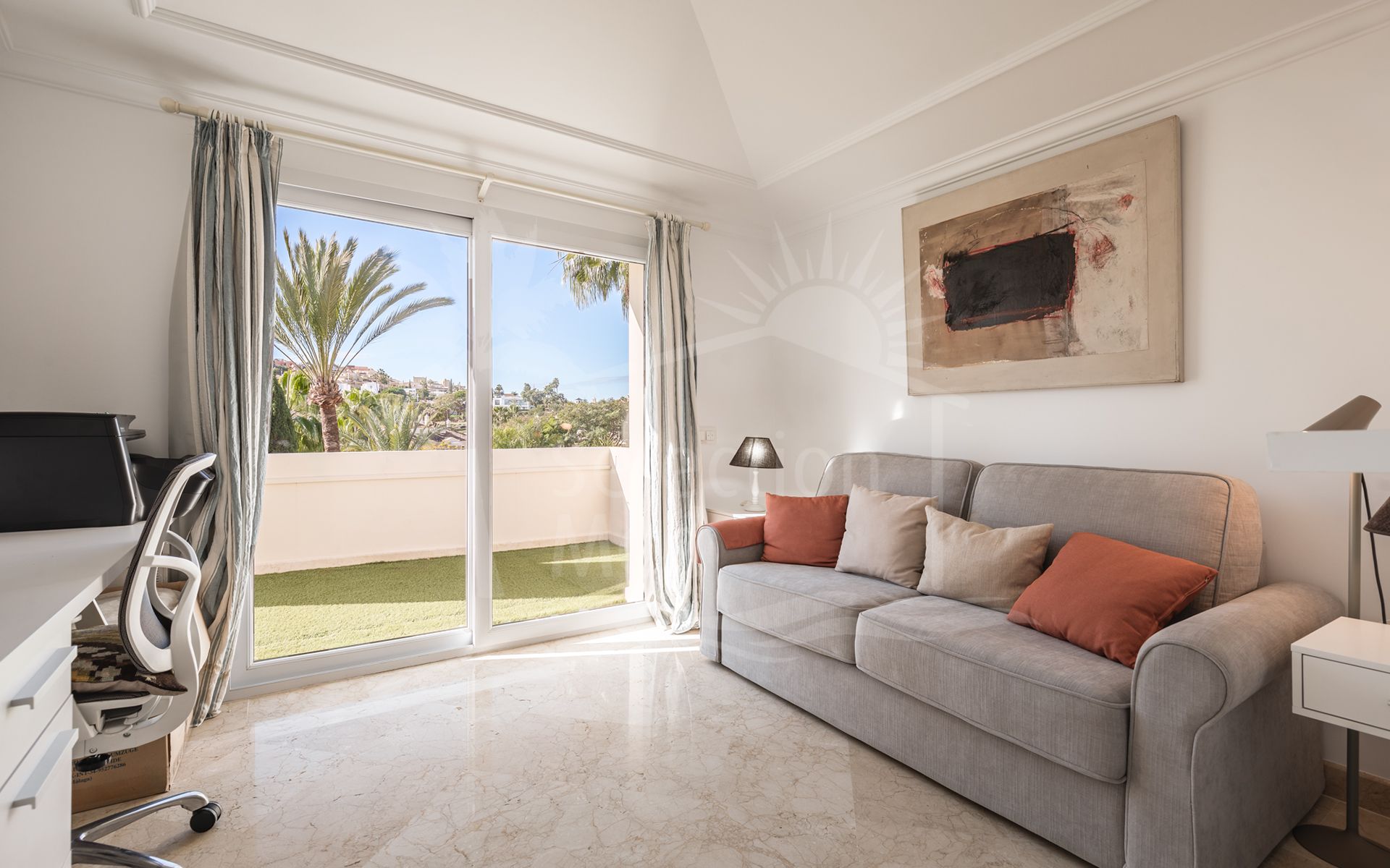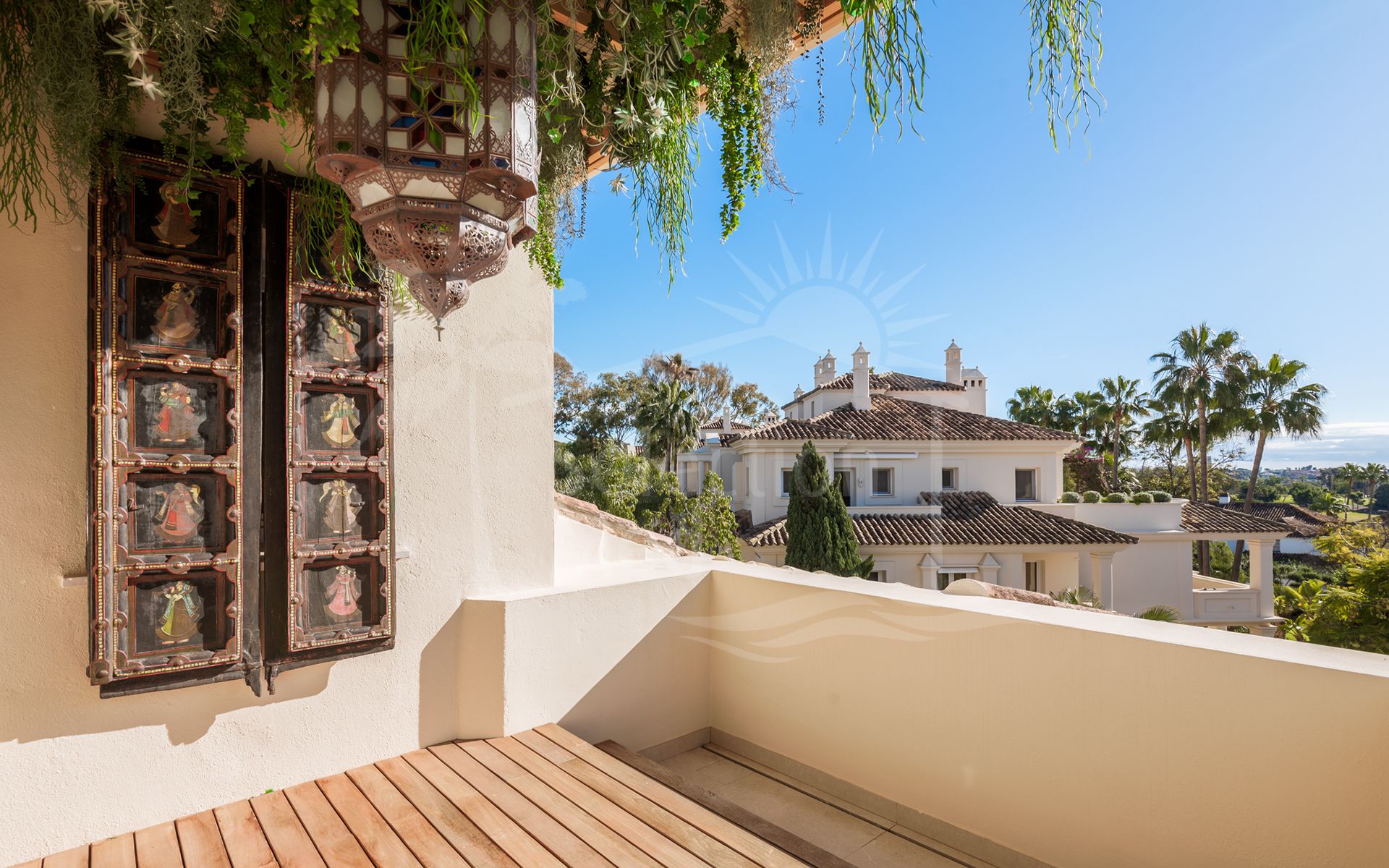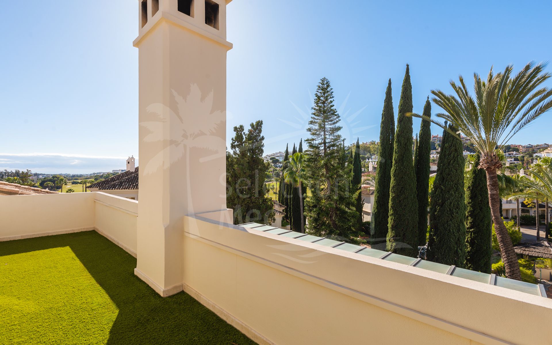 Cette propriété, orientation sud-ouest, dispose des commodités suivantes: terrasse privée, cuisine équipée, salle de séjour, proche des écoles, vue mer, vue montagne, vue sur le golf, piscine climatisée, buanderie, terrasse couverte, volets électriques, placards, ascenseur, vue sur le jardin, vue sur la piscine, vue panoramique, première ligne de golf, services de proximité, climatisation, pièce de service, cheminée, plancher en marbre, tv par satellite, salle de gym, alarme, double vitrage, video interphone, excellent état, service de sécurité 24h et téléphone.
