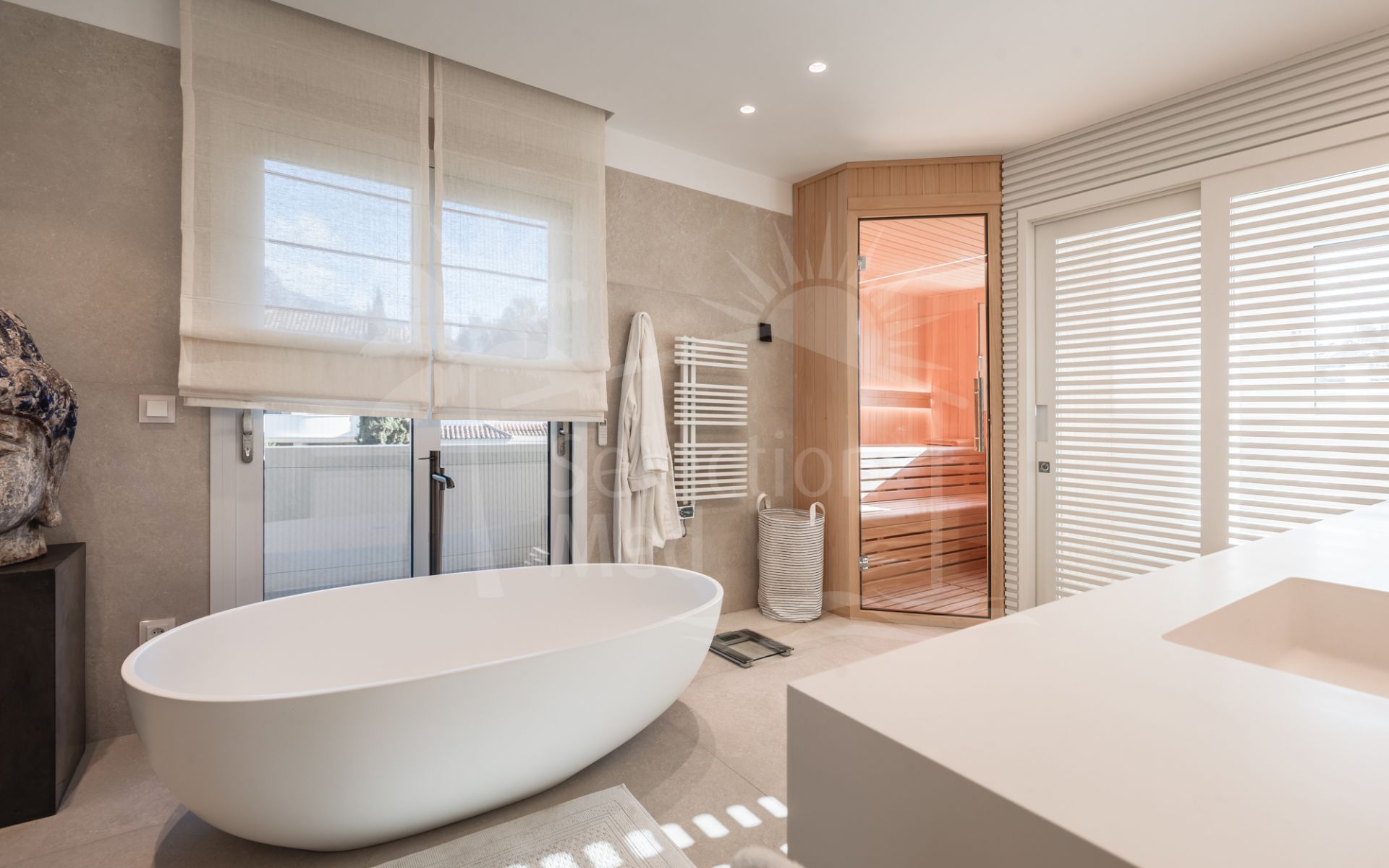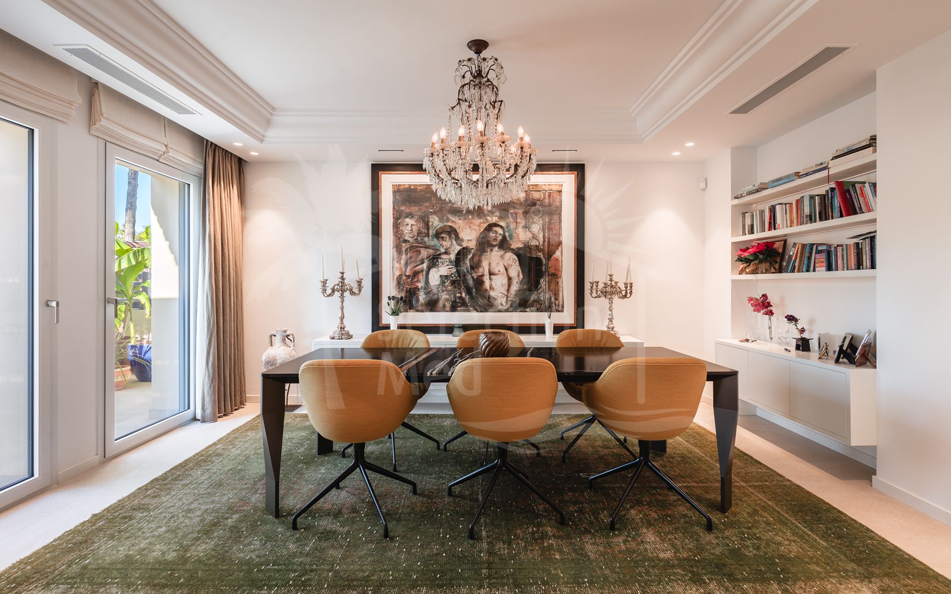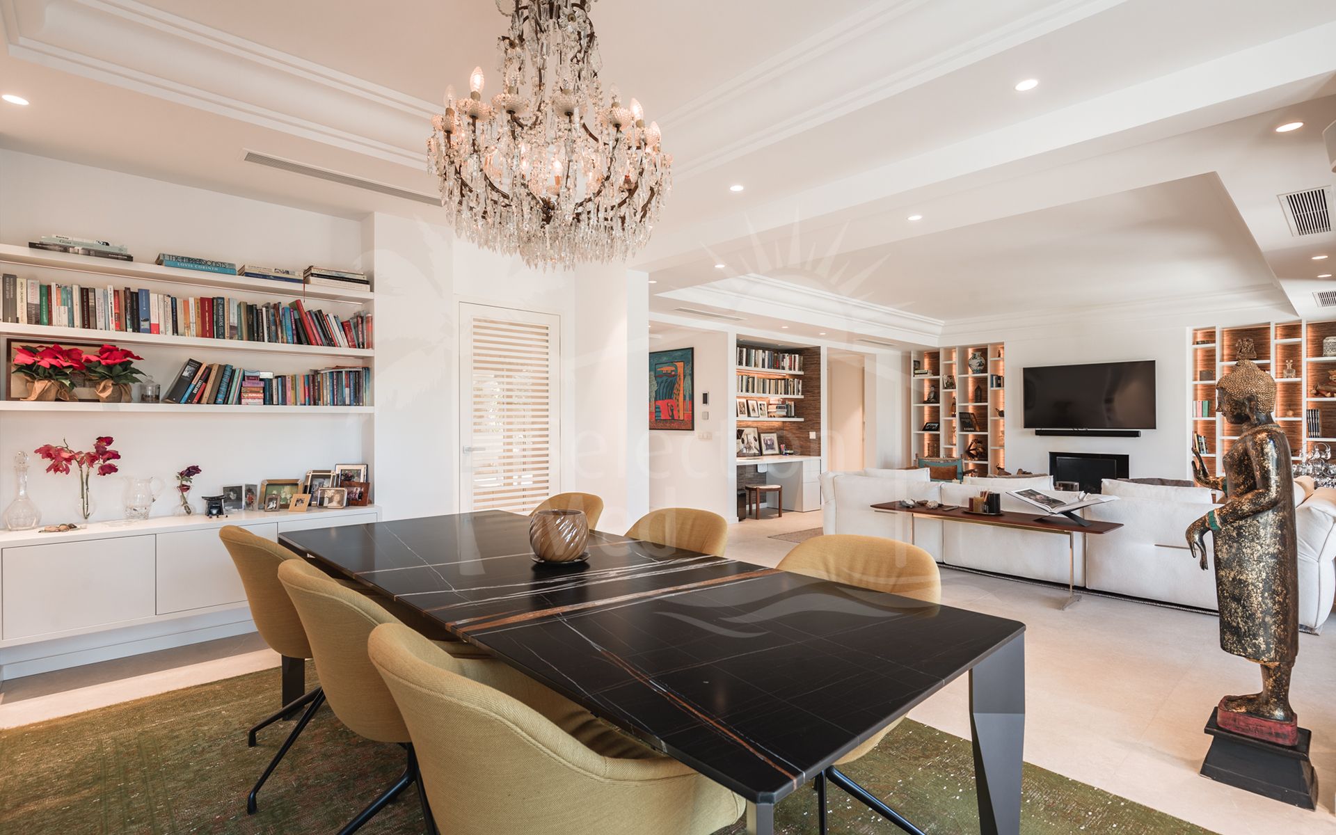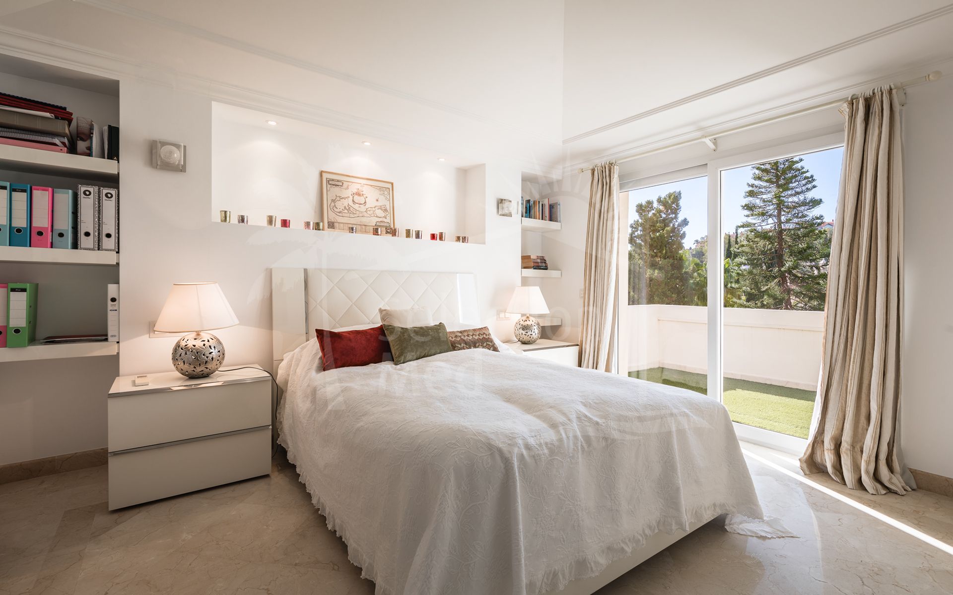 Cette propriété, orientation sud-ouest, dispose des commodités suivantes: terrasse privée, cuisine équipée, salle de séjour, proche des écoles, vue mer, vue montagne, vue sur le golf, piscine climatisée, buanderie, terrasse couverte, volets électriques, placards, ascenseur, vue sur le jardin, vue sur la piscine, vue panoramique, première ligne de golf, services de proximité, climatisation, pièce de service, cheminée, plancher en marbre, tv par satellite, salle de gym, alarme, double vitrage, video interphone, excellent état, service de sécurité 24h et téléphone.