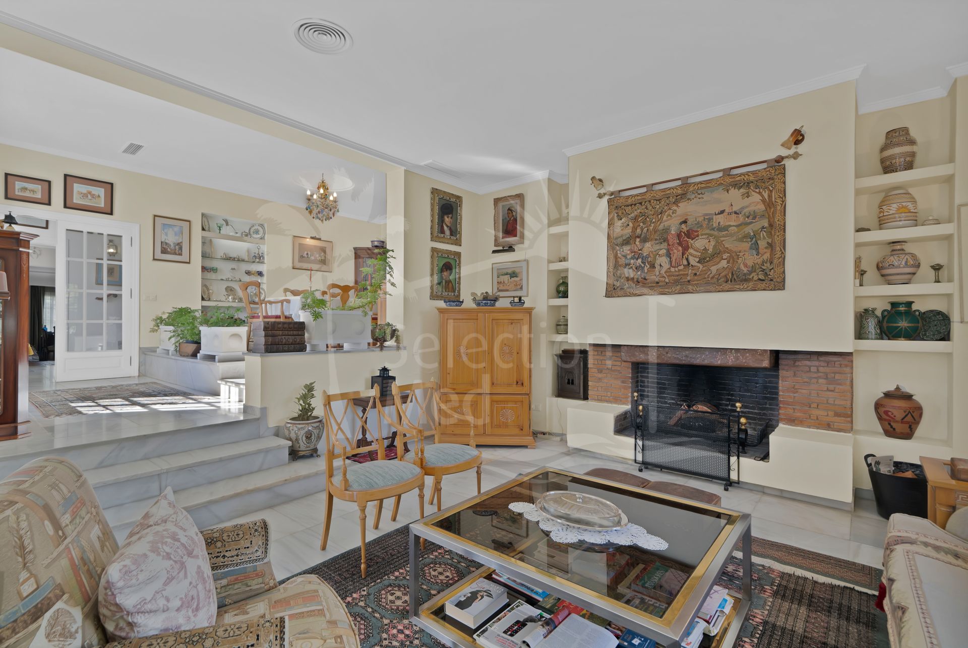 Cette propriété, orientation sud, dispose des commodités suivantes: terrasse privée, chambre de études, À proximité des commerces, près de la ville, proche des écoles, vue mer, appartement d’invités, vue montagne, bars, groundfloorpatio, terrasse couverte, vue sur le jardin, dressing, vue sur la piscine, services de proximité, non meublé, cheminée, plancher en marbre, proche de la mer/plage, golf à proximité, closetorestaurants, salle de jeux, alarme, double vitrage, video interphone, garageincludedinprice, nécessite des travaux et toilette d’invités.