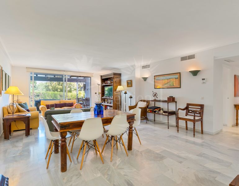 Spacieux appartement de trois chambres au rez-de-chaussée situé dans la communauté recherchée de Las Jacarandas, Bel Air, dans un complexe fermé avec des jardins magnifiquement paysagés, deux piscines communes, et service de conciergerie. Idéalement situé à proximité de la plage...