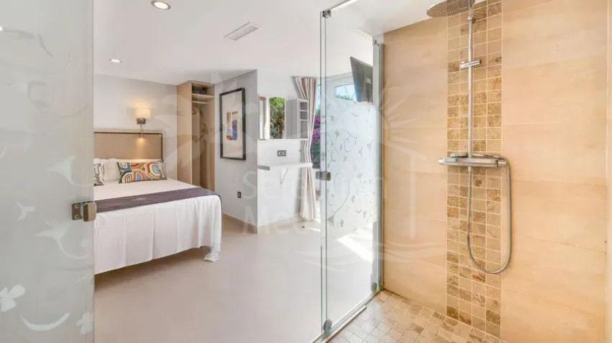 L'emplacement est sans aucun doute l'un des plus grands atouts de la propriété car il permet un style de vie où tout est accessible à pied. Située dans une rue résidentielle calme, la villa est à quelques pas de la promenade en bord de mer et de la plage, mais reste à proximité immédiate de toutes les commodités essentielles. Vos clients ou votre famille profiteront du luxe de se promener dans de nombreux magasins, supermarchés, restaurants gastronomiques, et le boulevard animé de San Pedro sans jamais avoir besoin d'une voiture, ce qui est vraiment une commodité inestimable dans ce domaine.