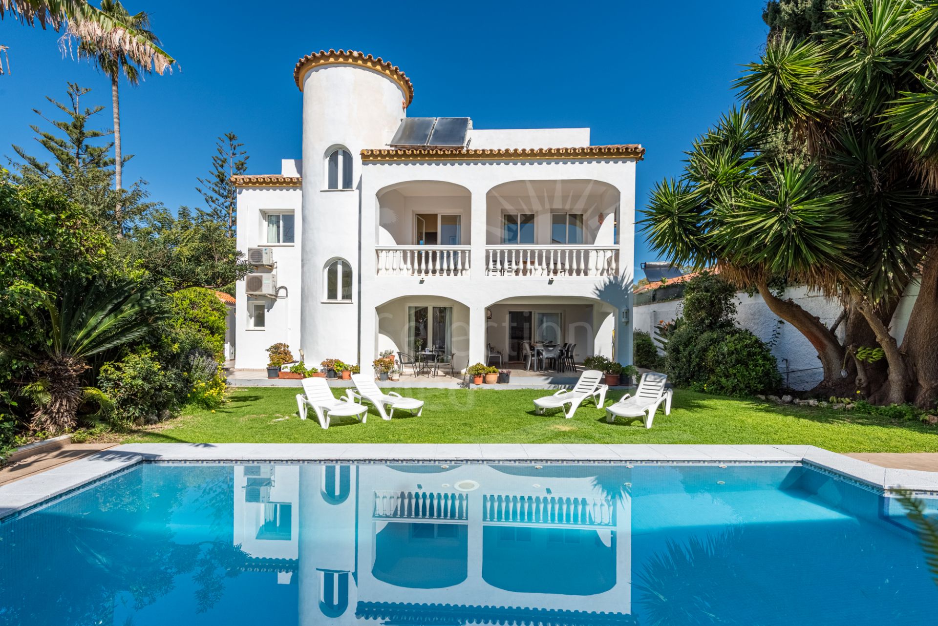 La villa conserve la chaleur et le caractère de l’architecture espagnole classique, avec des éléments authentiques et une disposition intemporelle qui reflètent la qualité et le charme de son époque.