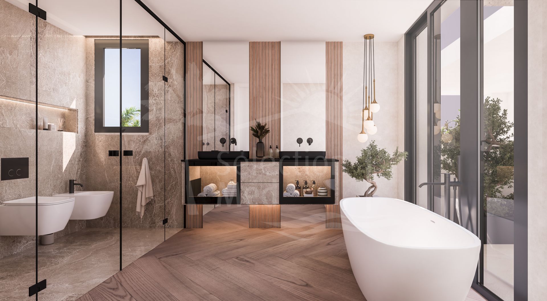 Villa à vendre à Lomas del Virrey, Marbella Golden Mile avec 5 chambres, 5 salles de bains, 5 salles de bain en-suite, 2 toilets, construit à 2025 et a piscine (privé), garage (privé) et jardin (privé). Dimensions: 1069.97m² construit, 1208.18m² parcelle, 593.4m² intérieur et 476.57m² terrasse.