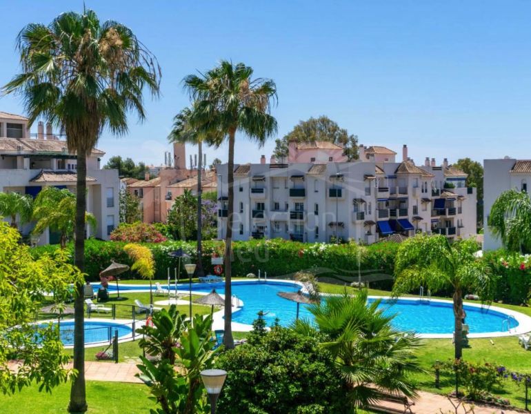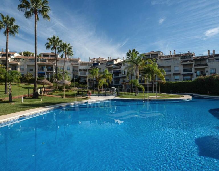 Appartement rez de chaussée à vendre à Lorcrimar, Nueva Andalucia avec 3 chambres, 2 salles de bains, 1 salles de bain en-suite, construit à 2002 et a piscine (communautaire), garage (privé) et jardin (communautaire). Dimensions: 131m² construit et 50m² terrasse. Cette...