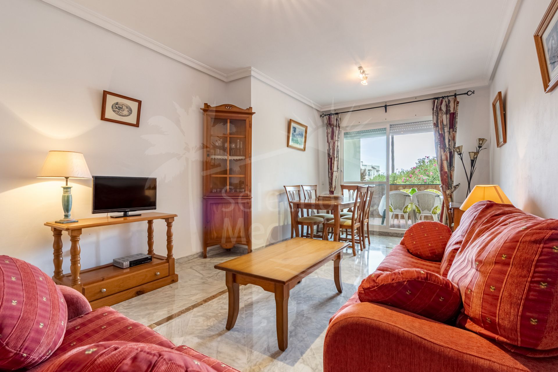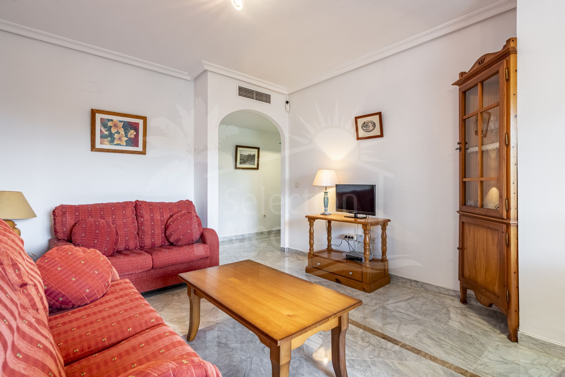 Appartement à vendre à Lorcrimar, Nueva Andalucia avec 2 chambres, 2 salles de bains, 1 salles de bain en-suite, construit à 2000 et a piscine (communautaire), garage (privé) et jardin (communautaire). Dimensions: 72m² construit, 72m² intérieur et 8m² terrasse.